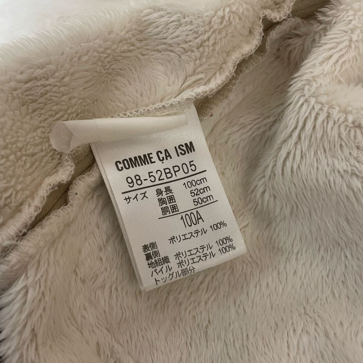 COMME CA ISMのキッズ用ダッフルコートです。サイズは100Aで、ベージュカラーにボア素材が暖かみのあるデザインです。内側もボアになっており、寒い季節にぴったりです。