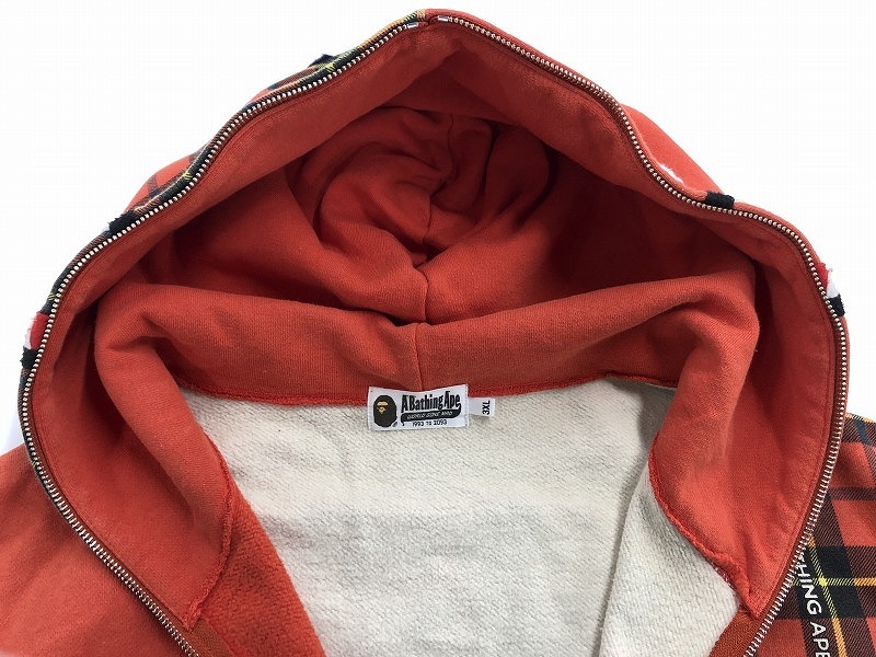 ア ベイシング エイプ A BATHING APE メンズパーカー LOGO CHECK SHARK FULL ZIP HOODIE 3XLサイズ 001ZP131004M