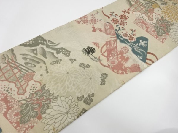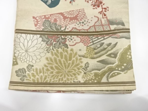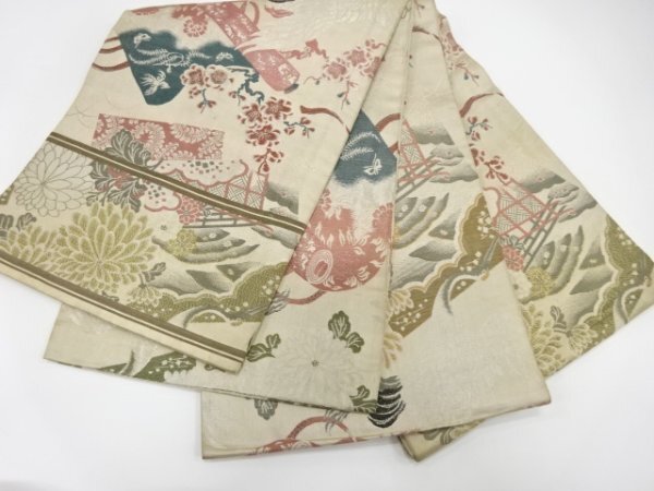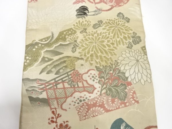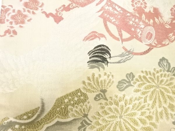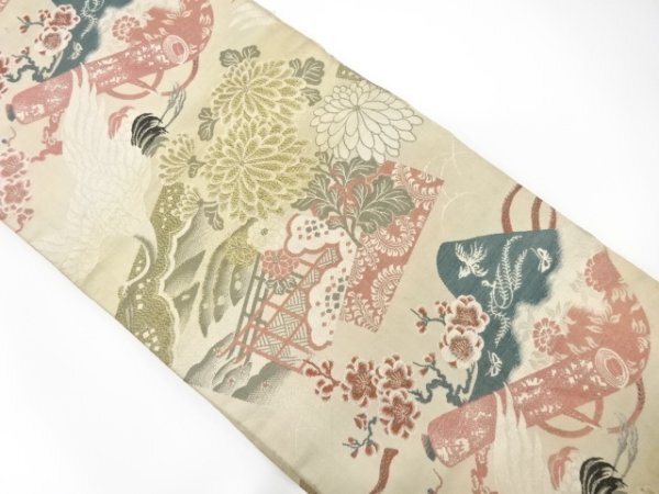 ys7539586; 鶴に巻物・菊梅模様織出し丸帯(材料)【アンティーク】【着】