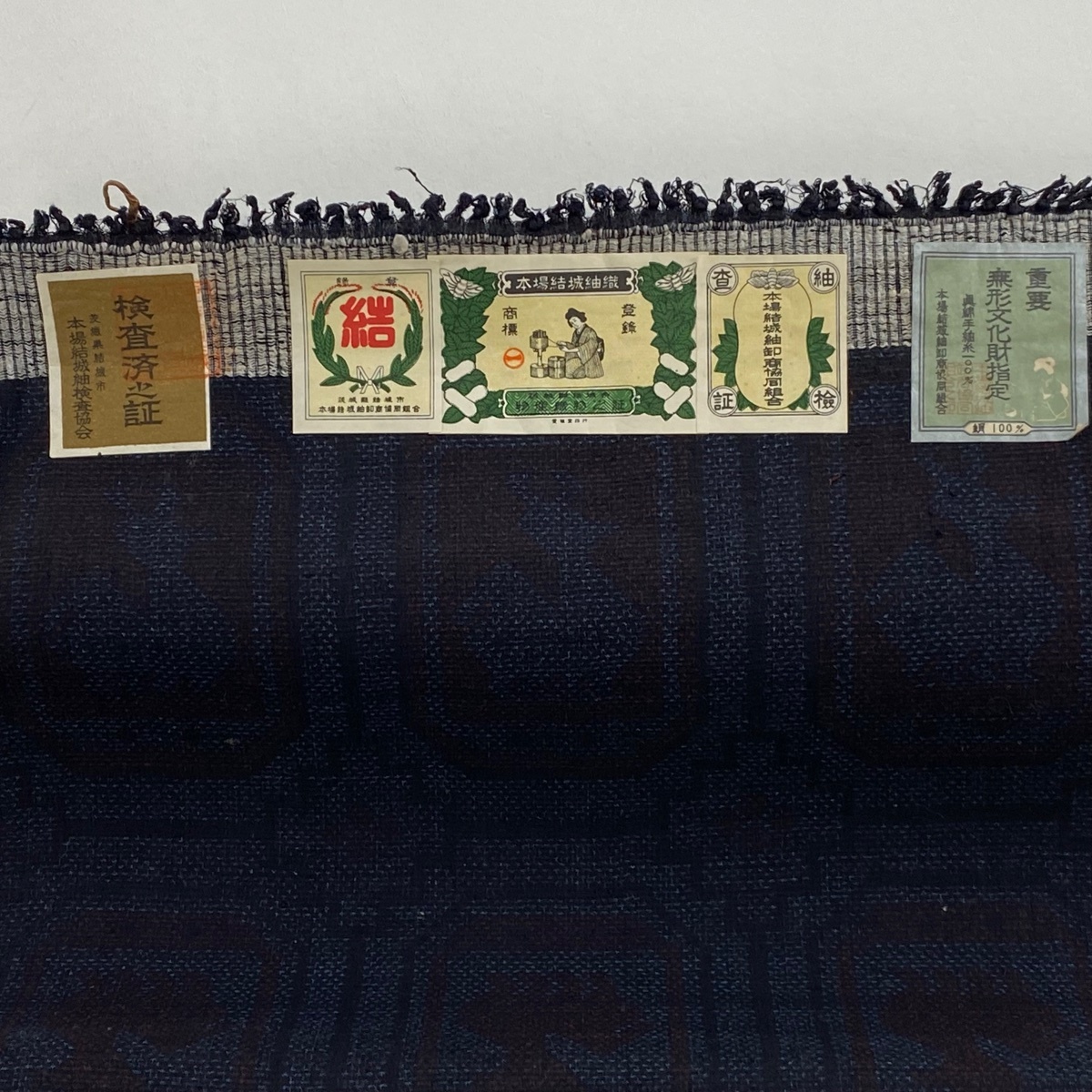 | 反物 逸品 結城紬 奥順 証紙あり 有栖川 濃紺 正絹 【中古】 |