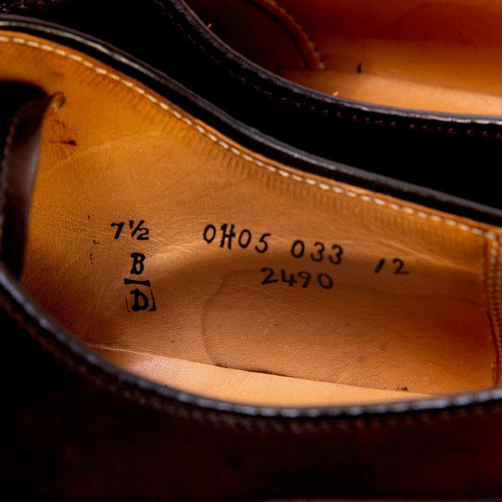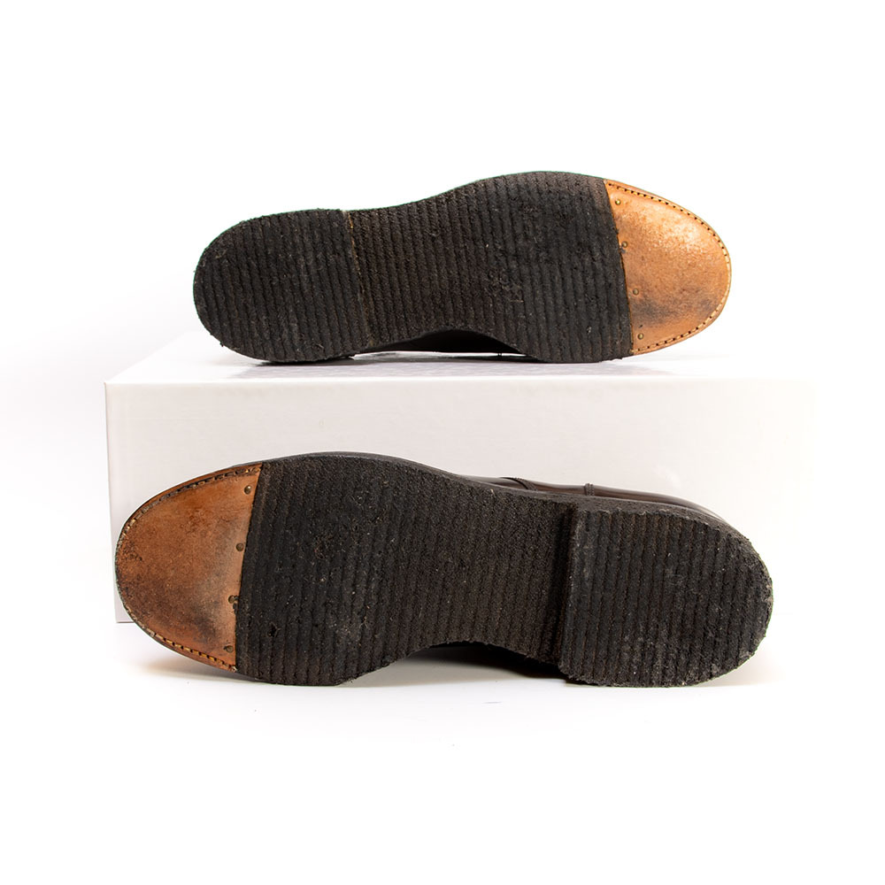更に詳しい状態ランクの説明は以下を御覧ください。 なお、コードバンや、ミュージアムカーフやアンティーク仕上げを施されたレザーの場合、状態ランクと別途下記もご覧ください。 [Nランクについて] 当方で正規取扱を行っている新品の商品です。シューケア用品、シューツリー等の備品がこちらに該当します。 [Sランクについて] 新品同様品。未使用品や新古品。室外での着用のない、未使用や未開封の状態のまま保管されていたお品〜室内での試着程度までがこちらに該当します。 [SAランクについて] SランクとAランクの間の中古品。外見だけでは新品に履き皺がついた程度の未使用に近い極美品。およそ使用1〜10回数未満と推定されるお品物です。傷なども見受けられず、ソールの削れ、中底の沈みなどもほとんど感じられない状態。 [Aランクについて] 使用感がほとんどない美品。微かなの傷・汚れなどは見受けられるものの、凝視しなければわからないお品。ソールの削れやリフトの削れも数ミリ程度で、補強や交換も特に必要のない程度。 [ABランクについて] AランクとBランクの間の程度の中古品。一部に傷・シミ・ヤケ・汚れ・擦れが見受けられるものの、使用上問題ない状態。未使用〜修理時期の間ぐらいの、ある程度馴染みも出てきた着用感のお品。 [Bランクについて] 傷・シミ・ヤケ・汚れ・削れなどがある中古品。概ね使用上問題のない状態。元々のリフトから交換時期・または既に削れのため交換されたぐらいの、ソールや出し縫いも全体的に削れが感じられるお品など。 [BCランクについて] BランクとCランクの間の程度の中古品。大きな傷・シミ・ヤケ・汚れ・削れや、一部に破れ・クラック・芯の潰れなどが一部ある訳アリ品。 [Cランクについて] ジャンク扱いの中古品。大きな傷・シミ・ヤケ・汚れ・削れや、破れ・クラック・芯の潰れなどが複数箇所以上に及ぶ状態。 [※コードバンを用いた品物について] コードバン(レアカラーを含む)を用いた素材は、製造工程や性質上、カーフに比べ革の製造段階(新品時)から色ムラやシミ、インクシミ、色味の個体差が多くございます。ブランド正規店の検品も使用上問題ないとされて販売されている箇所にあたり、それぞれの個体を愉しむという方針上、許容の上ご検討ください。 [※ミュージアムカーフ・アンティーク仕上げの品物について] 製造の性質上、全体や部分的に色ムラがございます。またハンドフィニュシュ(手仕上げ)を行っているメーカーやブランドの場合、個体によって色味やムラの出し方に個体差が生じる場合がございます。予めご了承くださいませ。 他の出品リストを「サイズ別」で以下ご確認いただけます。 ・表記サイズ3〜6.5の革靴はこちら ・表記サイズが7〜8.5の革靴はこちら ・表記サイズが9以上の革靴はこちら ・その他表記サイズの革靴はこちら ![]() |
