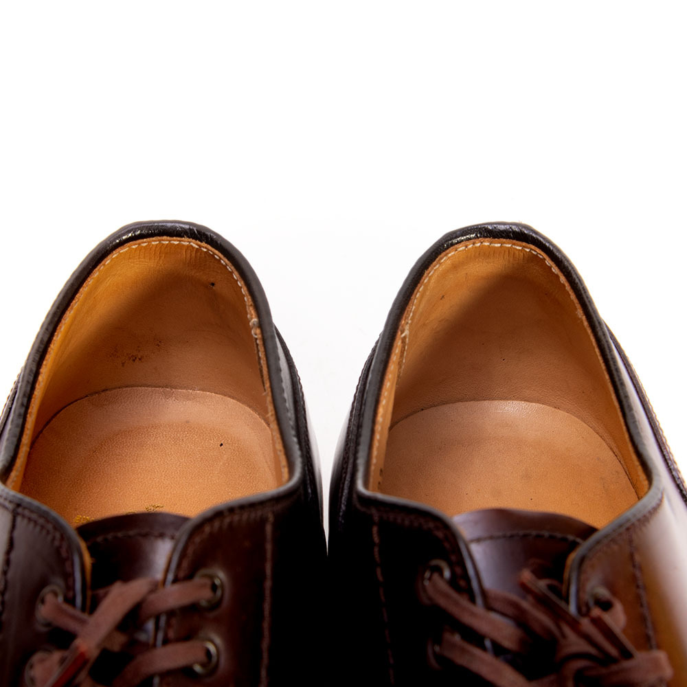 【 商品名 】 【10493MD】使用僅かの超美品 オールデン 2490 タンカーOX バーガンディ コードバン ミリタリーラスト サイズ7.5D ALDEN ラコタハウスの要望によって復活を果たしたミリタリーラスト。名作タンカーブーツをUチップ+ローカットにした2490は通年で扱いやすい一足です。製造時によると思われるシミ色ムラこそありますが、着用回数は非常に少ない使用数回のみの状態です。 ・メーカー:オールデンALDEN ・表記サイズ:7.5D 表記サイズに関するページはこちらです。 ・アウトソール全長:30cm(※おおよそのサイズとなります) 最大幅:10.5cm ・アッパー:コードバン ・カラー:バーガンディー ・付属品:無し ・程度【SAランク】 ※新品ではありません。USED品であることをご理解の上、入札をご検討下さい。