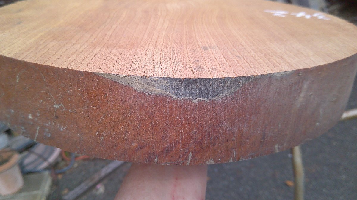 18-205 老木欅(ケヤキ)赤身の乾燥丸材(尺1寸)・・・丸盆・菓子器・鉢・椀・皿・ロクロ・挽きもの