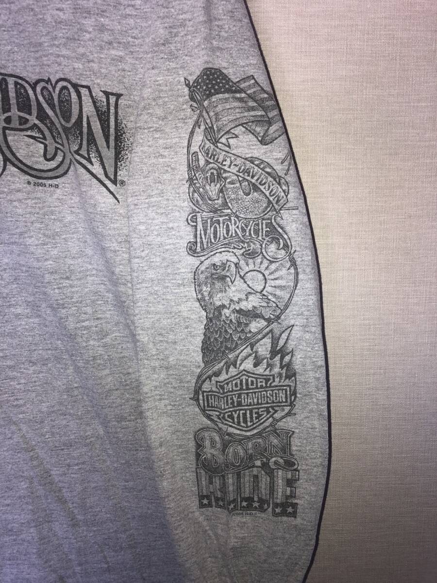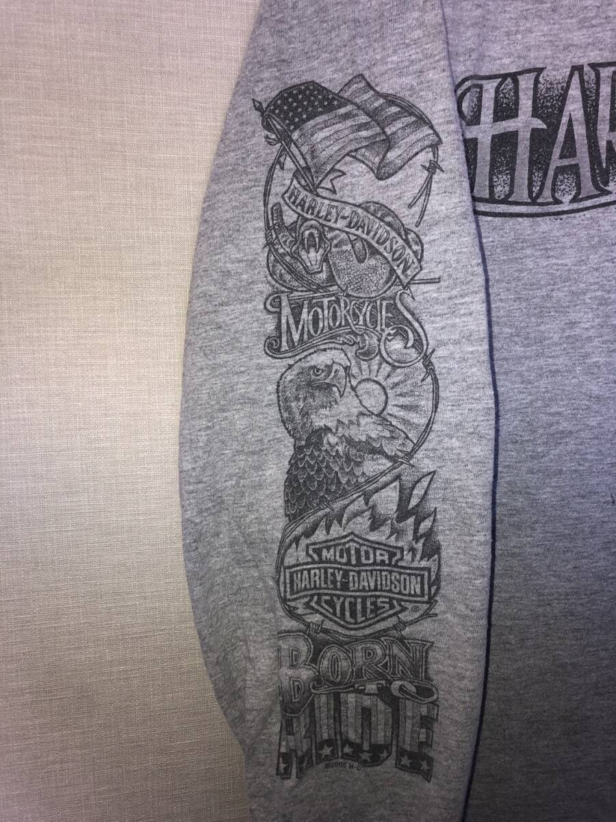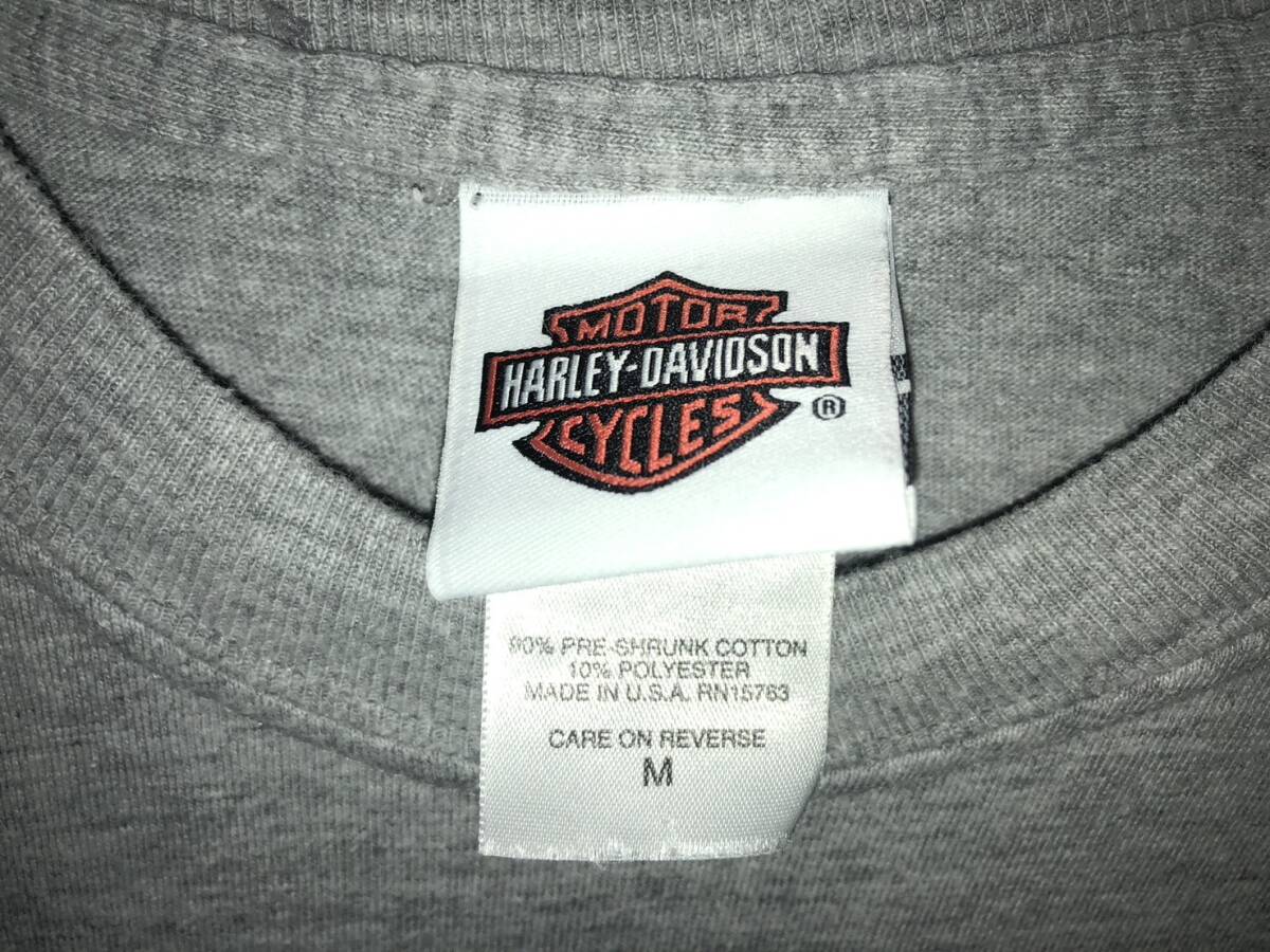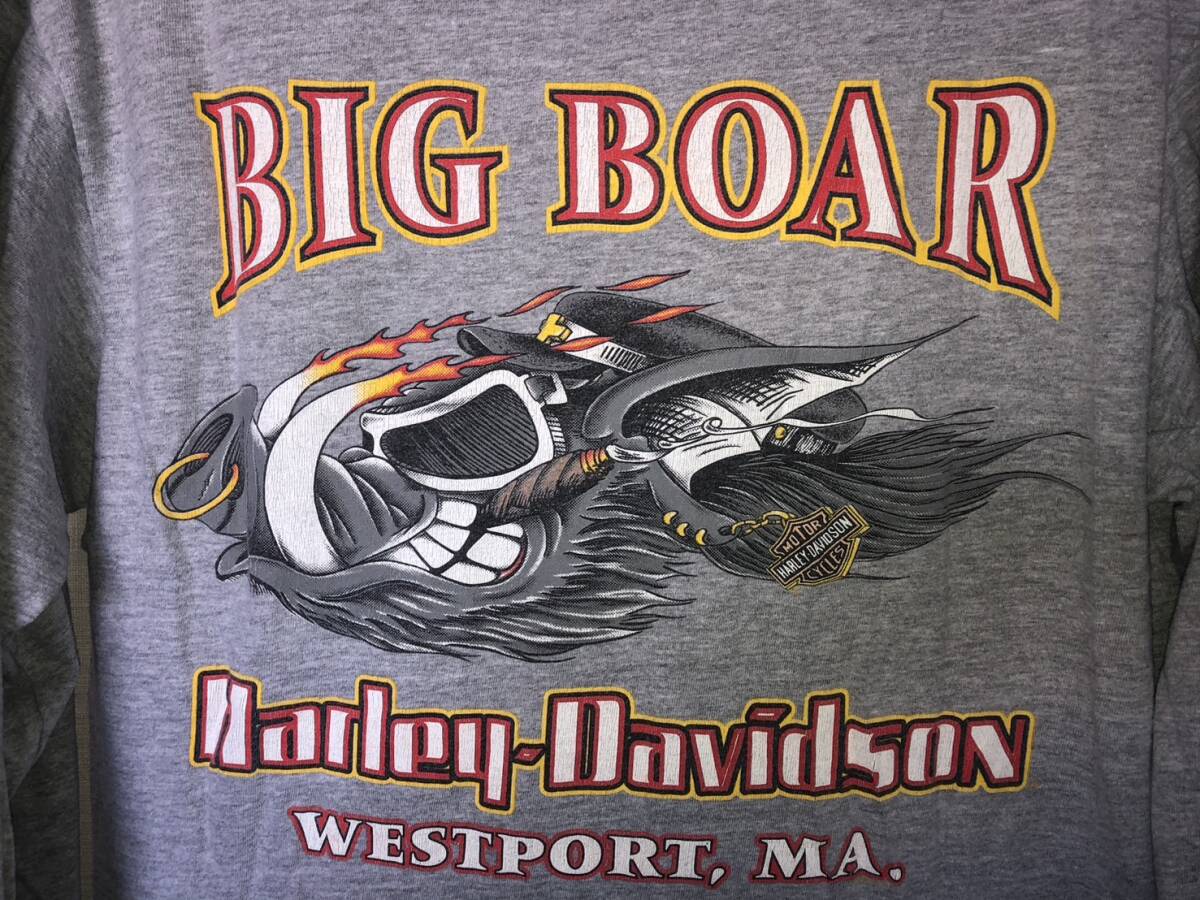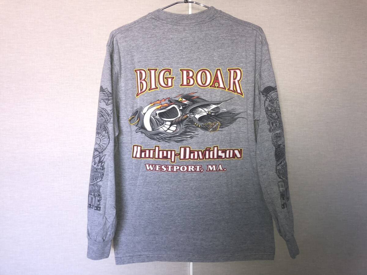 HARLEY DAVIDSON ロンTシャツ サイズM グレー BIG BOAR TATTOO スリーブ ハーレーダビッドソンバイカー ビンテージUSED古着 スケーター即決