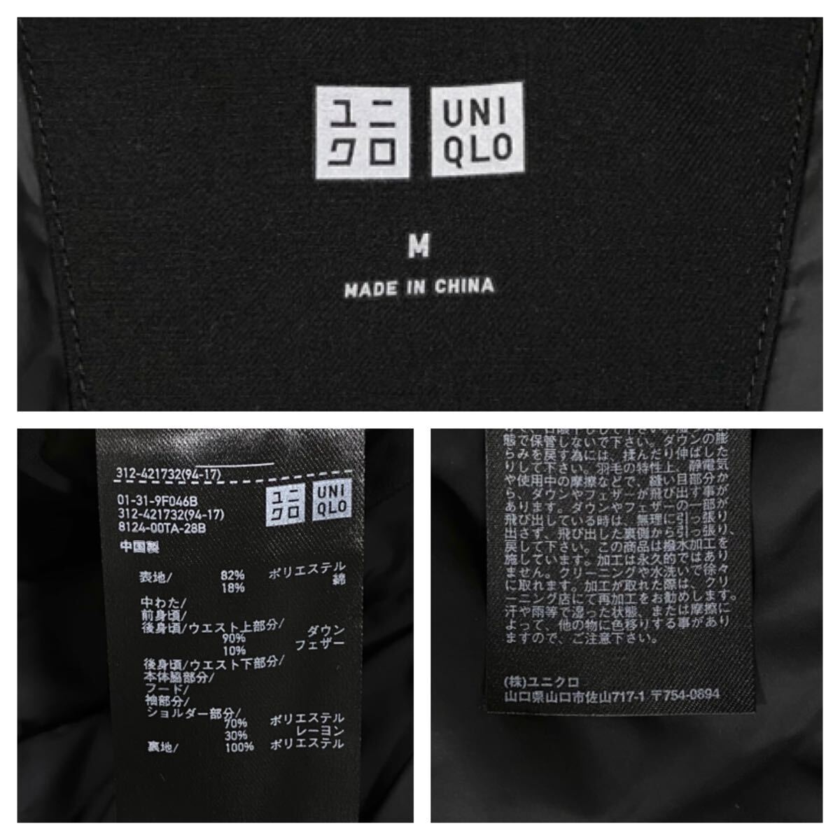 【UNIQLO(ユニクロ)ハイブリッドダウンコート フード着脱可能 メンズM ブラック 】