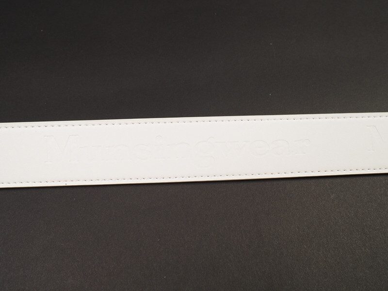 ゴルフを意識したファッション性や機能面にフォーカスしました。トップ式のバックルにはマンシングのブランドロゴが凸出しされています。帯にはエンボス加工によりさりげなくブランドロゴが加工されています。