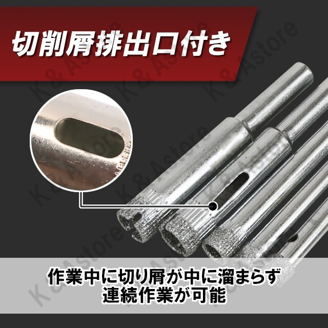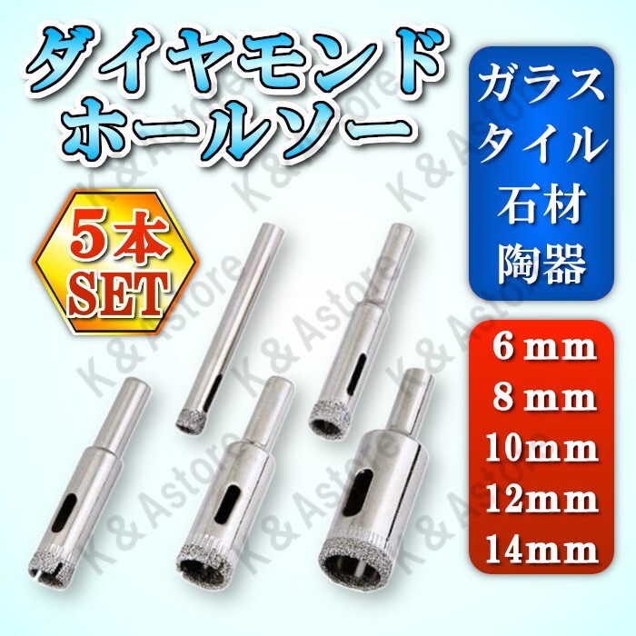 ダイヤモンドホールソー 6㎜ 8㎜ 10㎜ 12㎜ 14㎜ 5本 カッター ガラス タイル 石材 穴あけ ホルソー コアビット ドライバー 電動ドリル