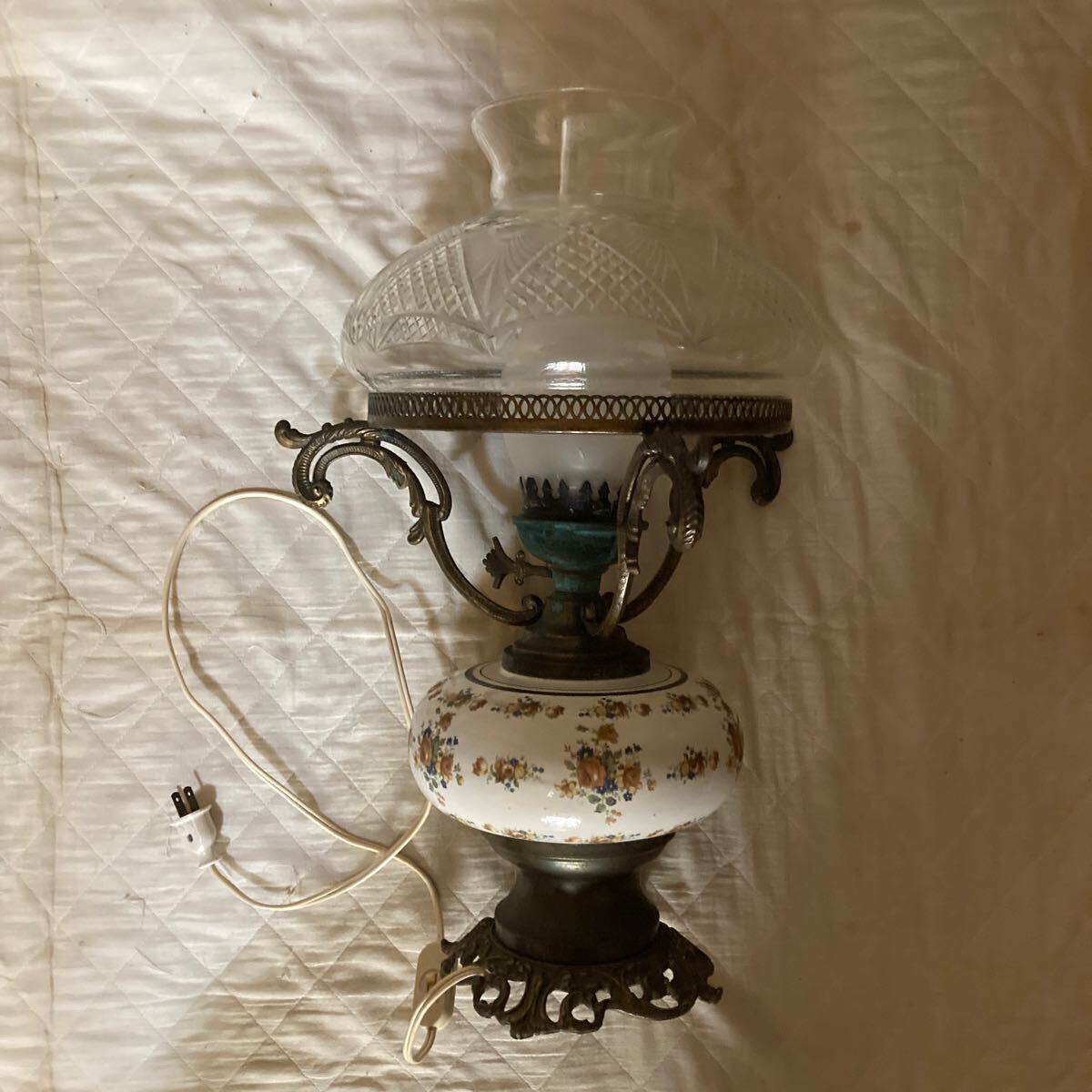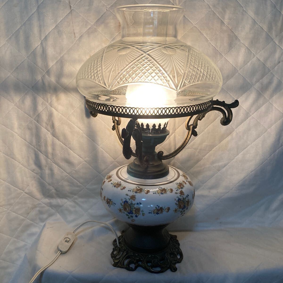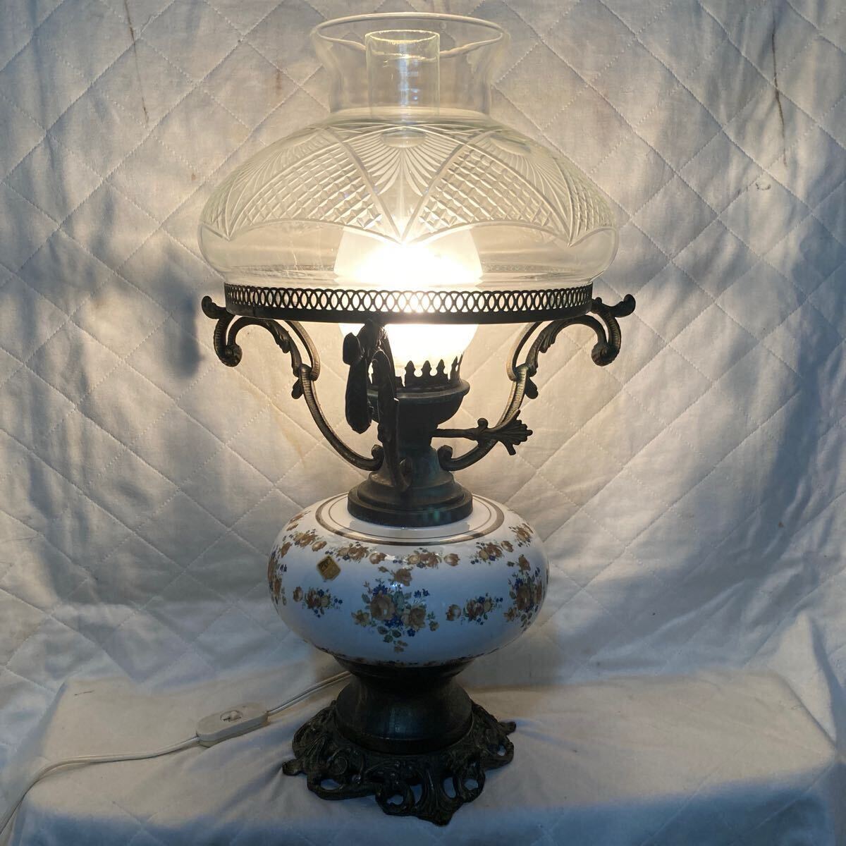 私の土佐.高知.田舎.近所.古い友人.コレクターさんの旧家屋敷の蔵に有った1900年代の古いイタリア製のスタンドランプ.台座.ホヤを置く台は象嵌要り銅.中のホヤを半分磨りガラス.外のホヤは切子.カット硝子です.中間.花柄の所は七宝焼です.電球付き.稼働品.全て