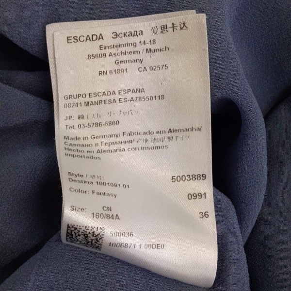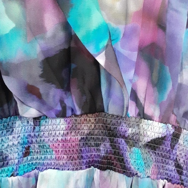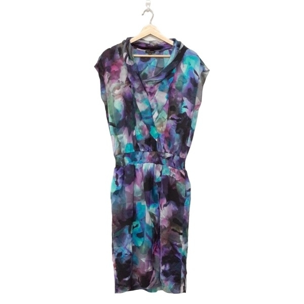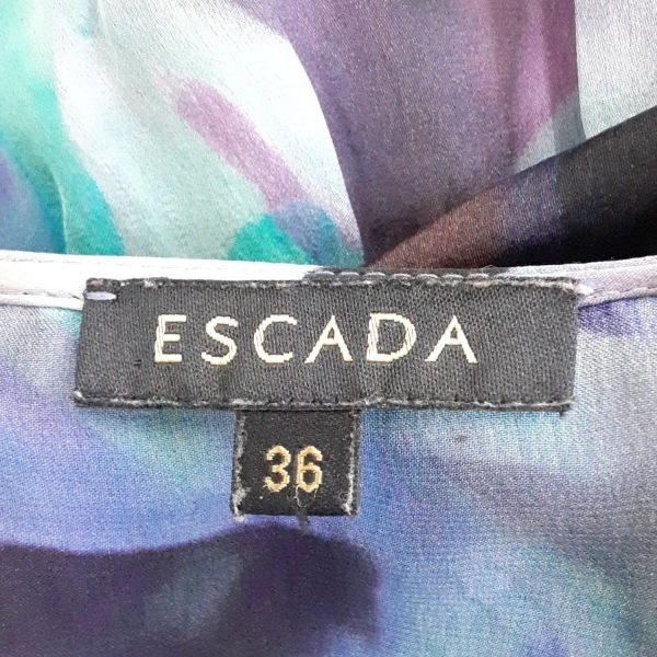 エスカーダ ESCADA サイズ36 M - パープル×ブルー×マルチ レディース Vネック/ノースリーブ/ひざ丈/シルク/ウエストゴム 美品 ワンピース
