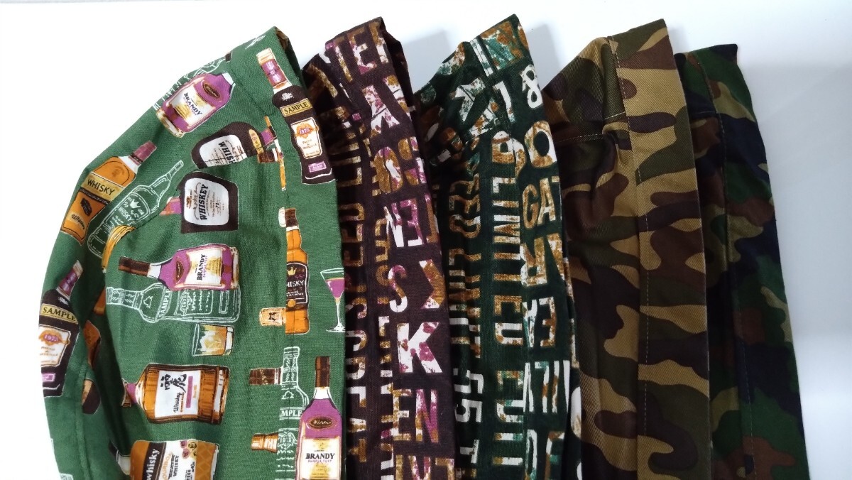 短★福袋 バンダナキャップ 5枚セット ハンドメイド 迷彩 緑 茶 英字 緑 茶 ウィスキー 緑