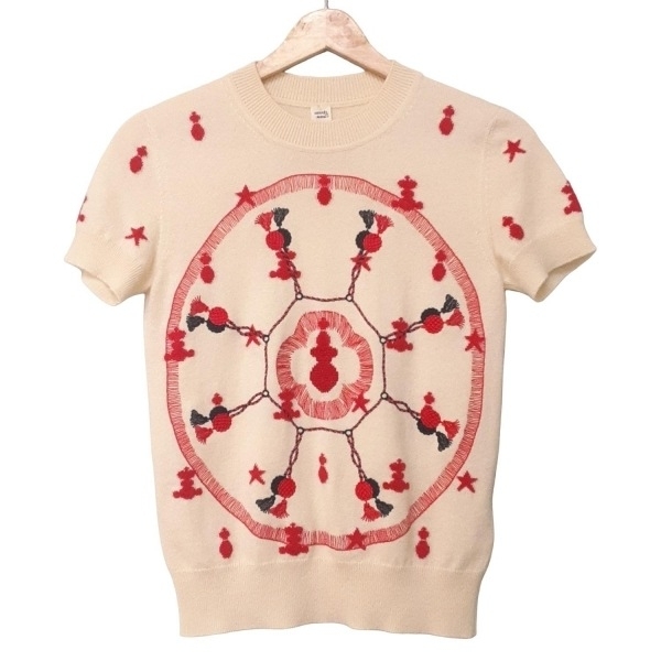 エルメス HERMES 半袖セーター/ニット サイズ34 S - アイボリー×ボルドー レディース 美品 トップス