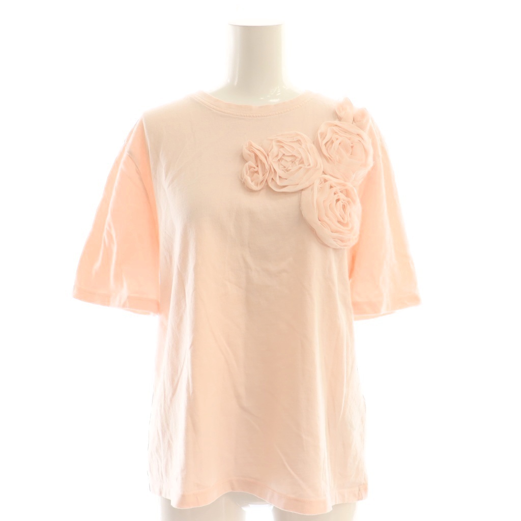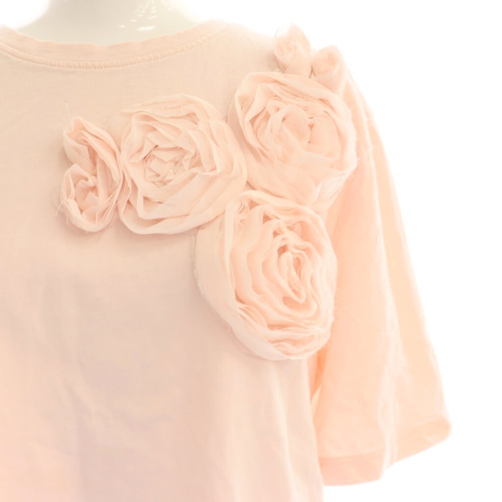 ザラ ZARA Tシャツ カットソー フラワーモチーフ 半袖 S ピンク /DF レディース