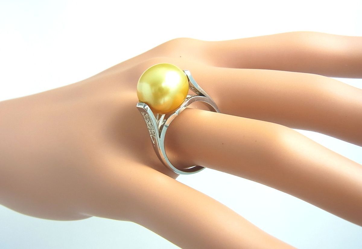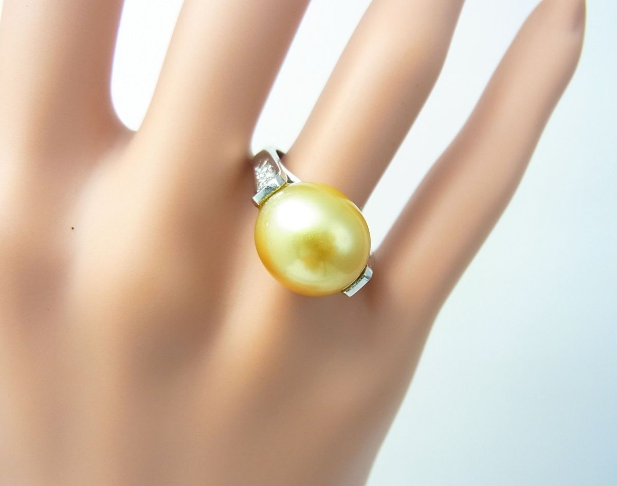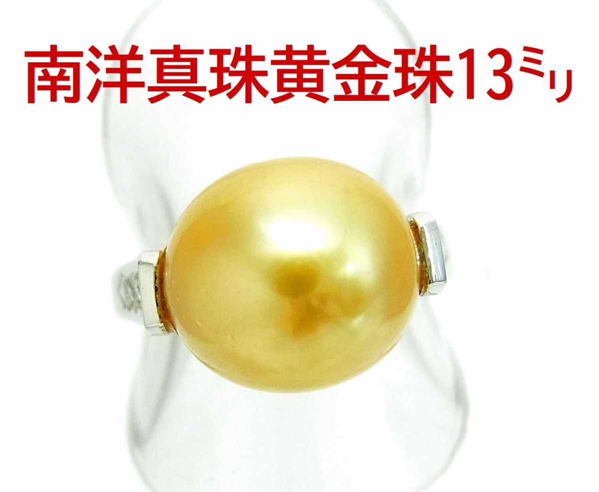 黄金色の南洋真珠 13ミリ ゴールド珠 天然ダイヤ プラチナ製リング卸価格でご奉仕 商品紹介動画あり 送料込み