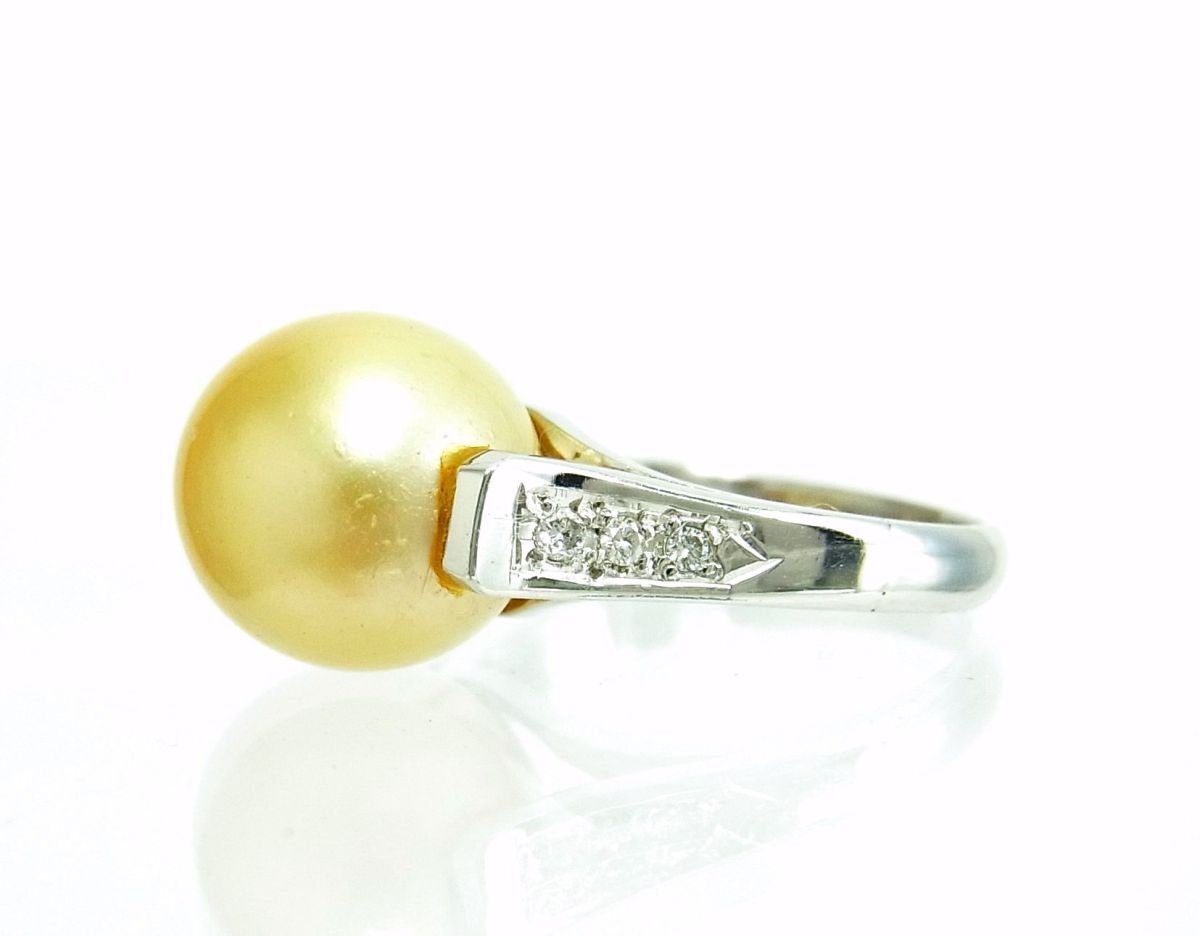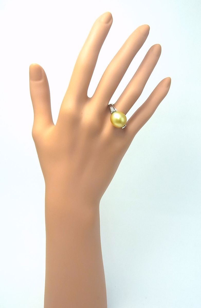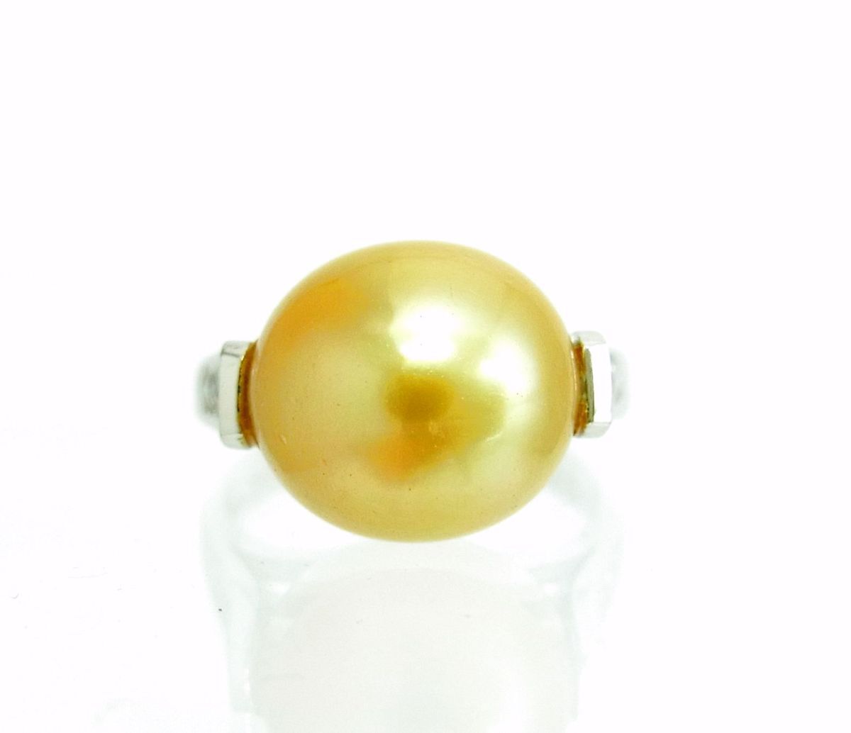 黄金色の南洋真珠 13ミリ ゴールド珠 天然ダイヤ プラチナ製リング卸価格でご奉仕 商品紹介動画あり 送料込み
