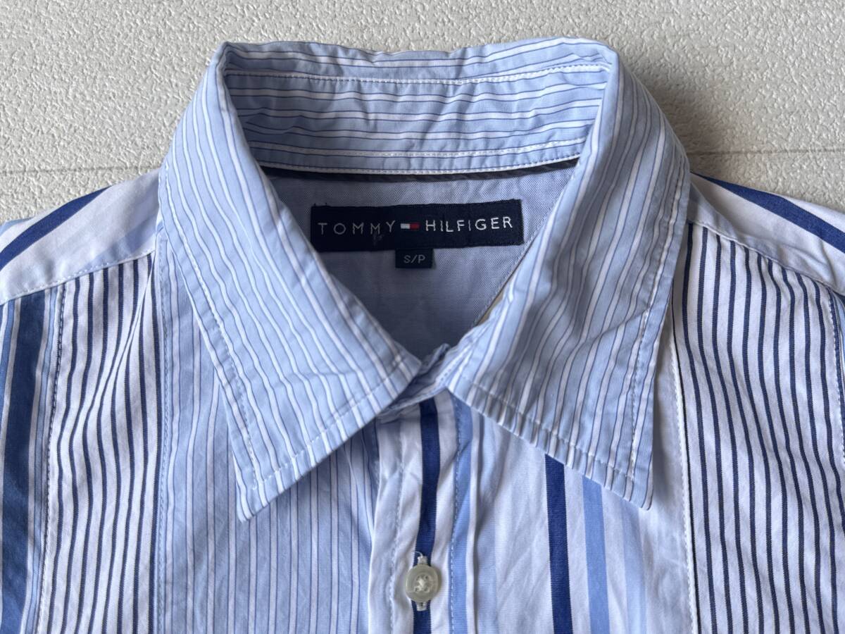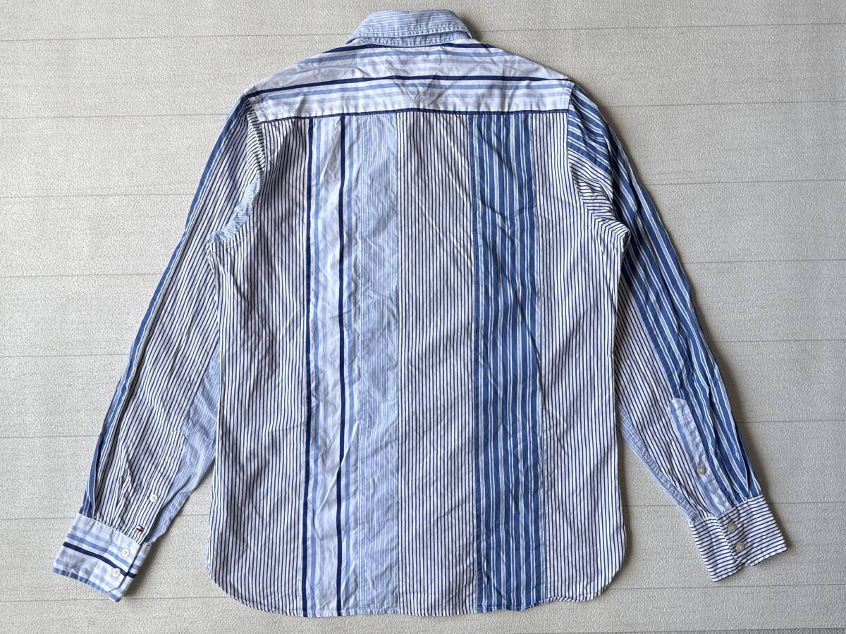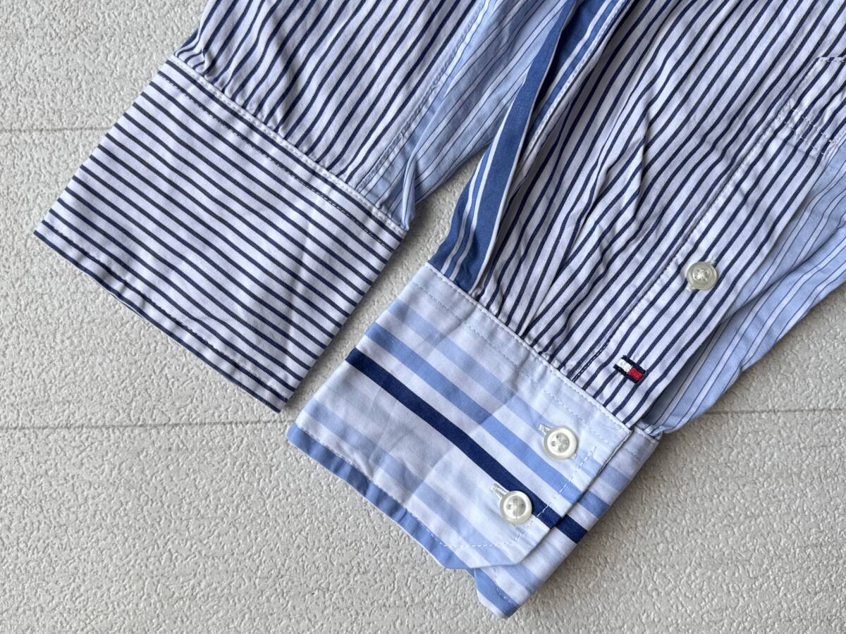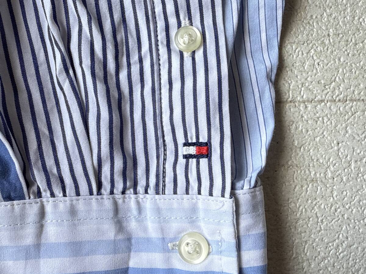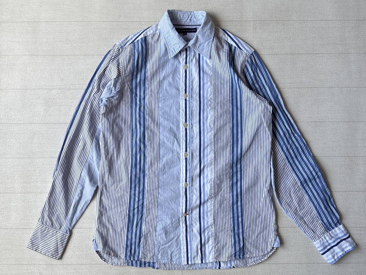 ☆送料無料☆ TOMMY HILFIGER トミーヒルフィガー USA直輸入 古着 長袖 クレイジーパターン マチ付き シャツ メンズ S ブルー系 中古 即決