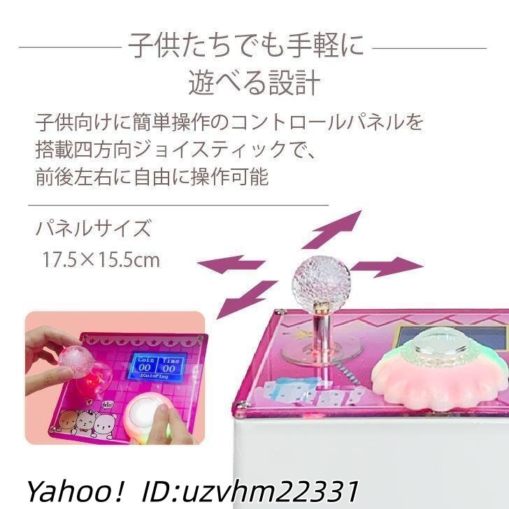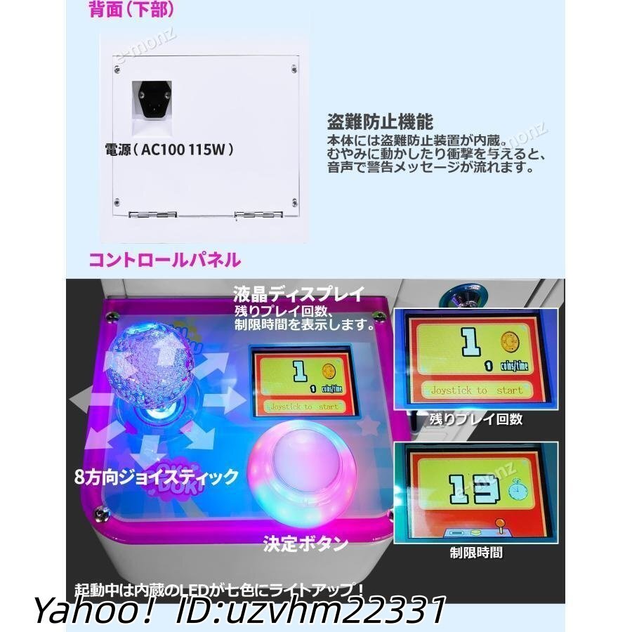 製品サイズ34 x 32 x 85 cm、10cmまでの景品に対応。広い内部でさまざまな景品が楽しめます。