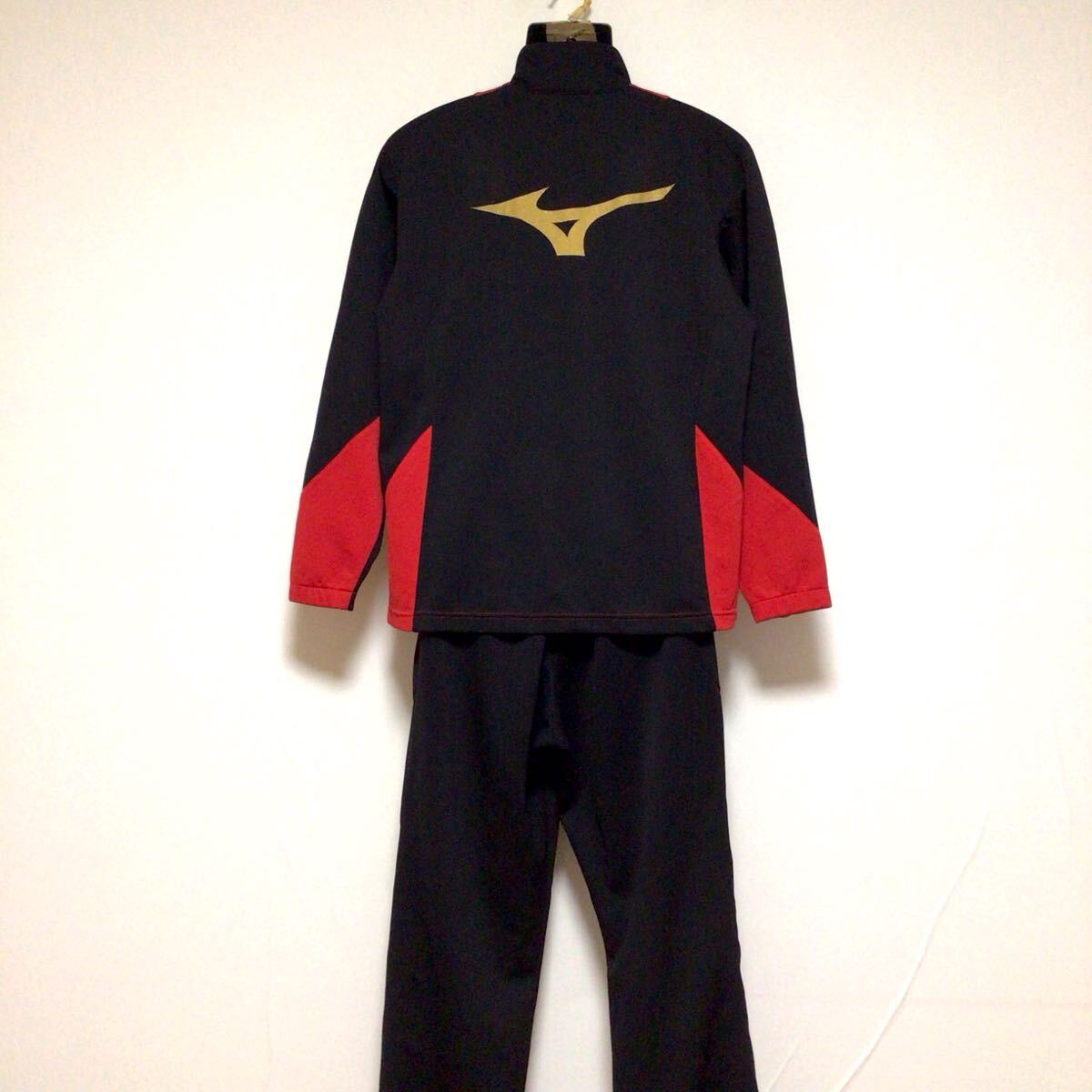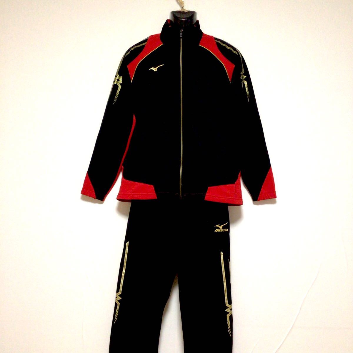 ミズノセットアップジャージになります。しっかりとしたジャージ生地、やや毛羽立ちがございますが目立つ程ではございません。とてもオシャレな作りとなっておりますので是非オススメです。