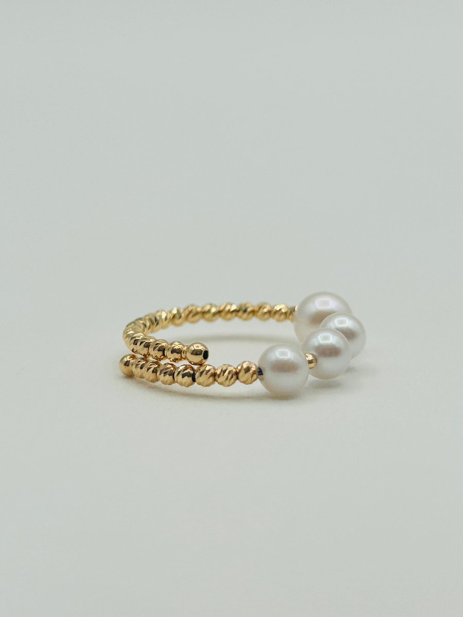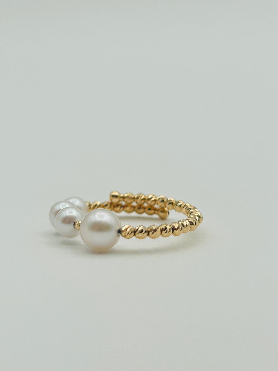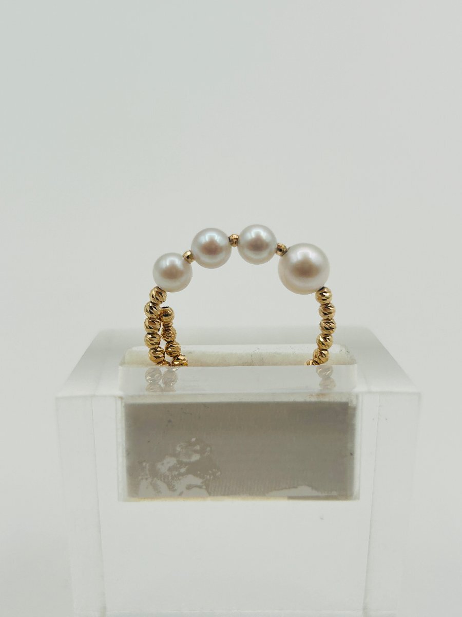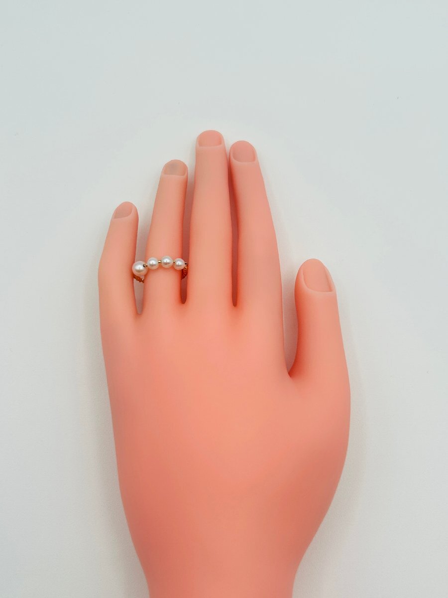 アコヤパールを4ピース使用したお洒落なファッションリングです。 形状記憶タイプでフリーサイズなので、お好きな指に自由自在に着用出来ます。 枠は18金イエローゴールドを使用、真珠との組み合わせが抜群です! カジュアル~オフィスシーンまで様々なシュチュエーションでお使いいただけます。 お値打ち価格でご提案致します! |