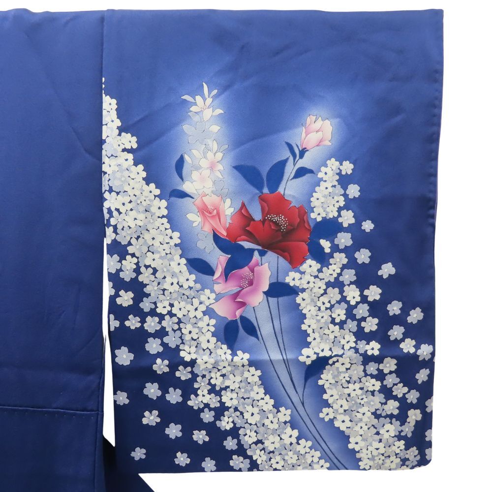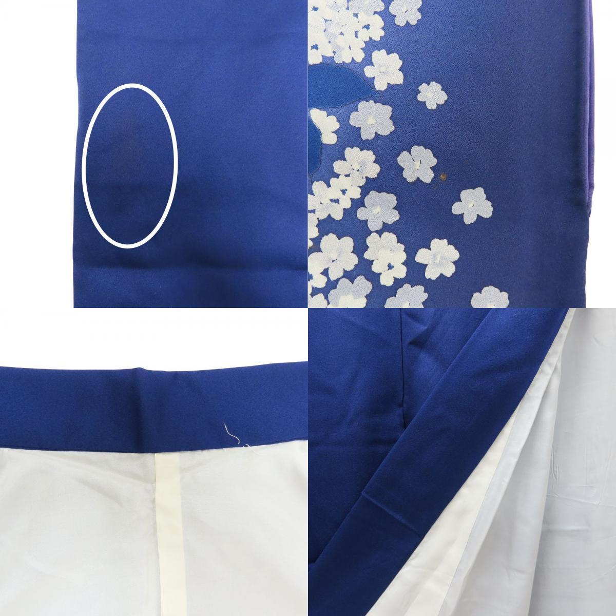 中古 訪問着・付下 附下 正絹 群青色 小花 バチ襟 和装 呉服 和服 きもの レディース 女性