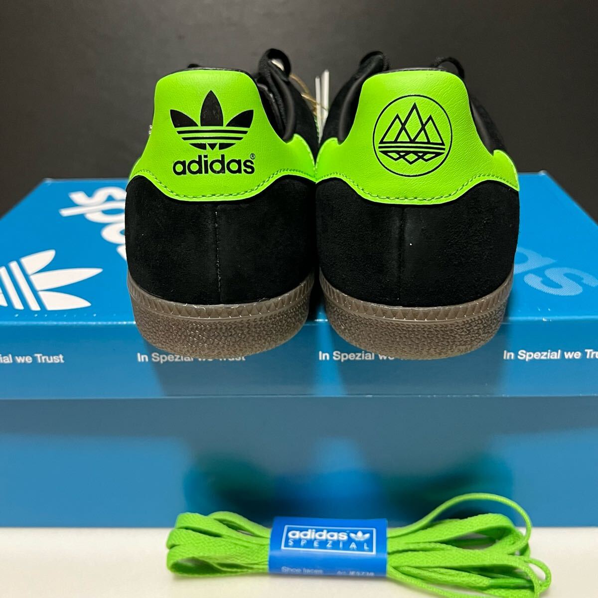 サイドには"SAMBA SPZL"の箔押し、ヒールにも"SPZL"のロゴがプリントで入る。
