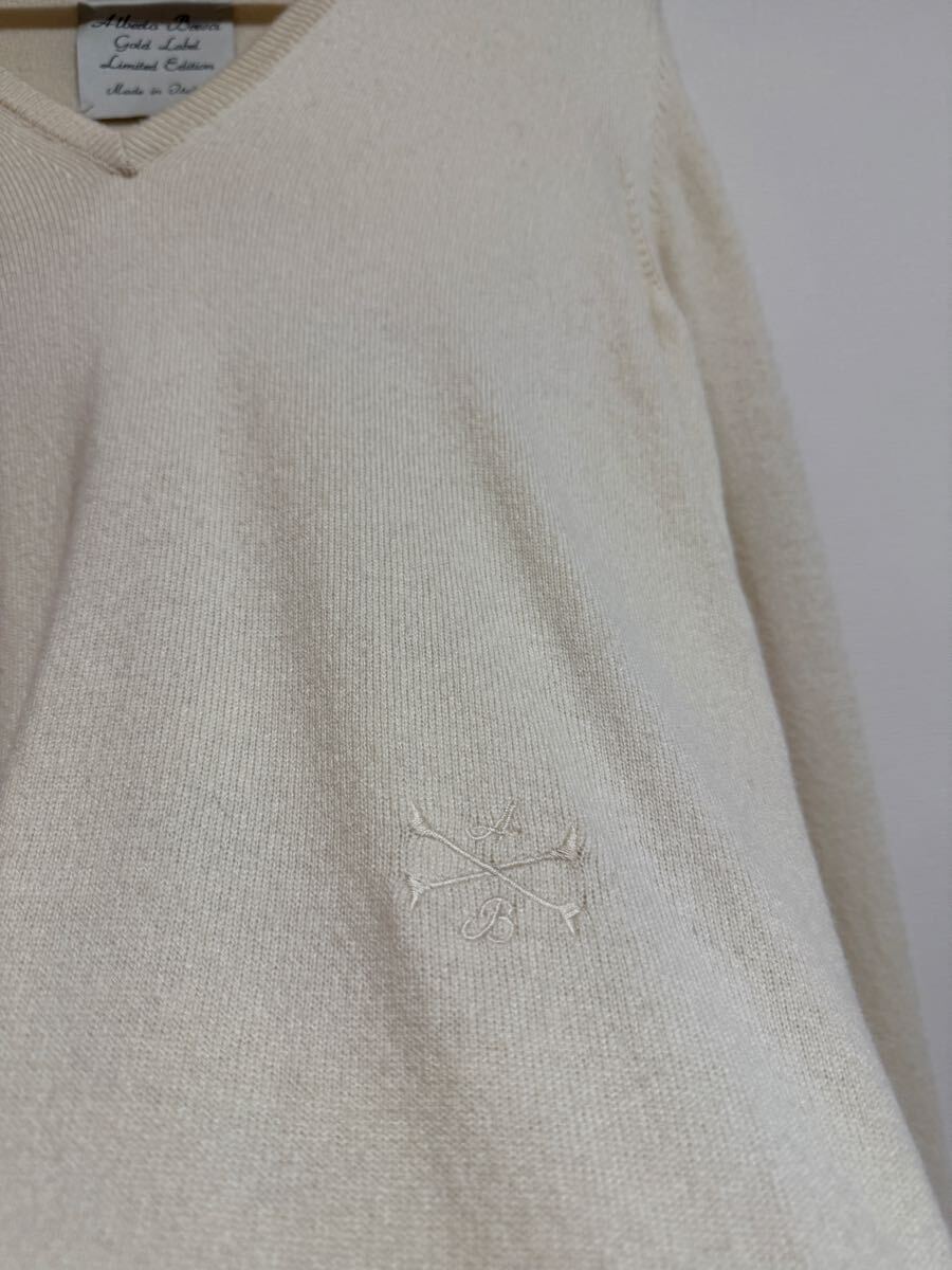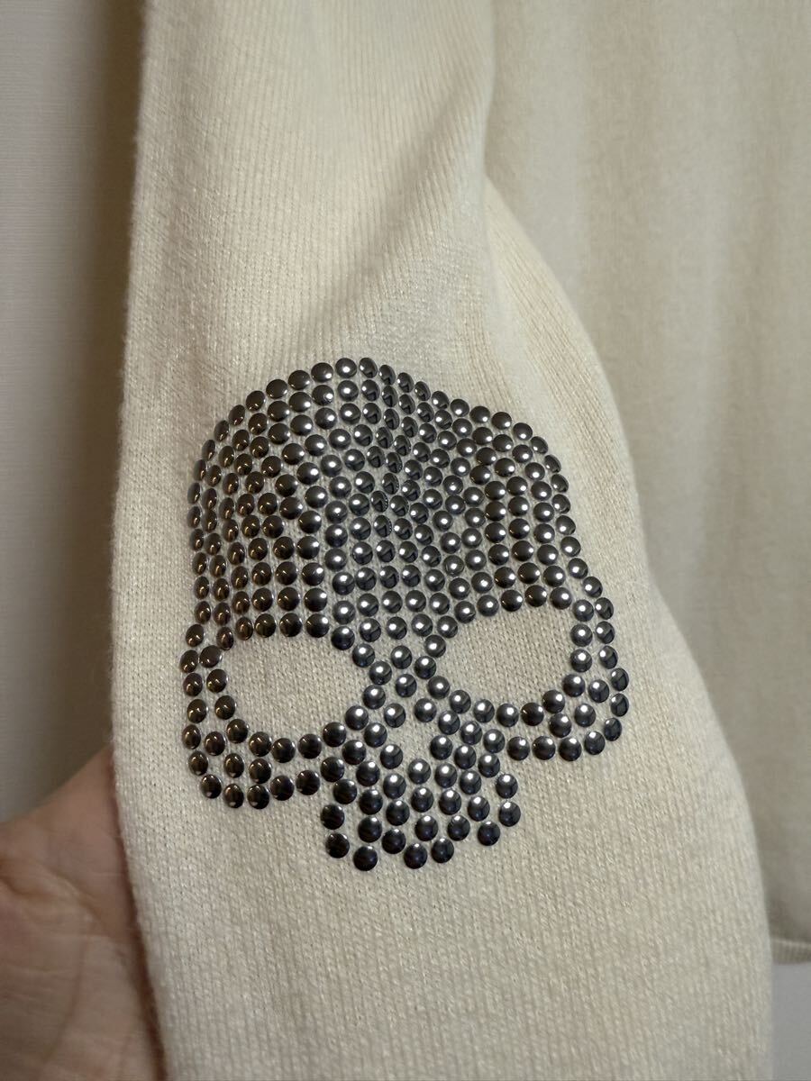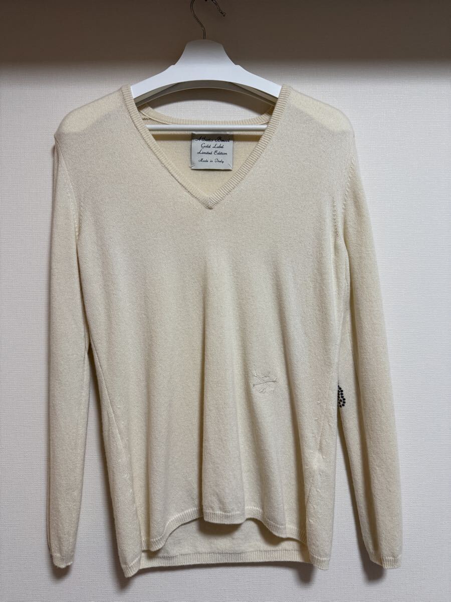 ★★新品未使用 ハイドロゲン Vネックセーター ベージュ カシミヤ入り スタッズパッチ ニット★★
