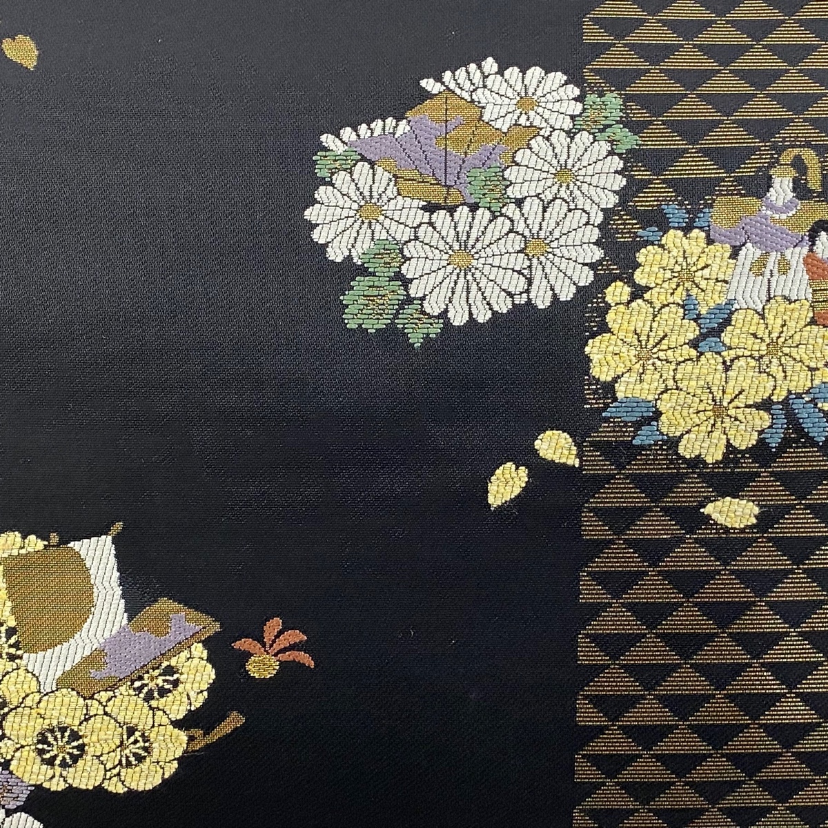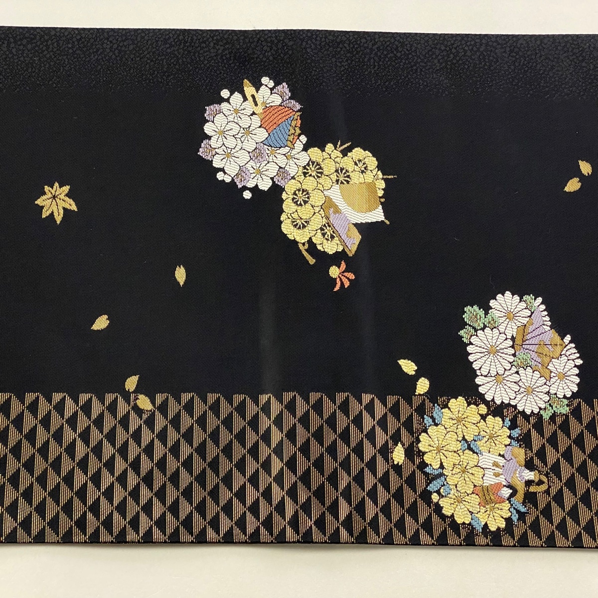 | 袋帯 美品 秀品 菊 鱗 箔 黒 六通 正絹 【中古】 |