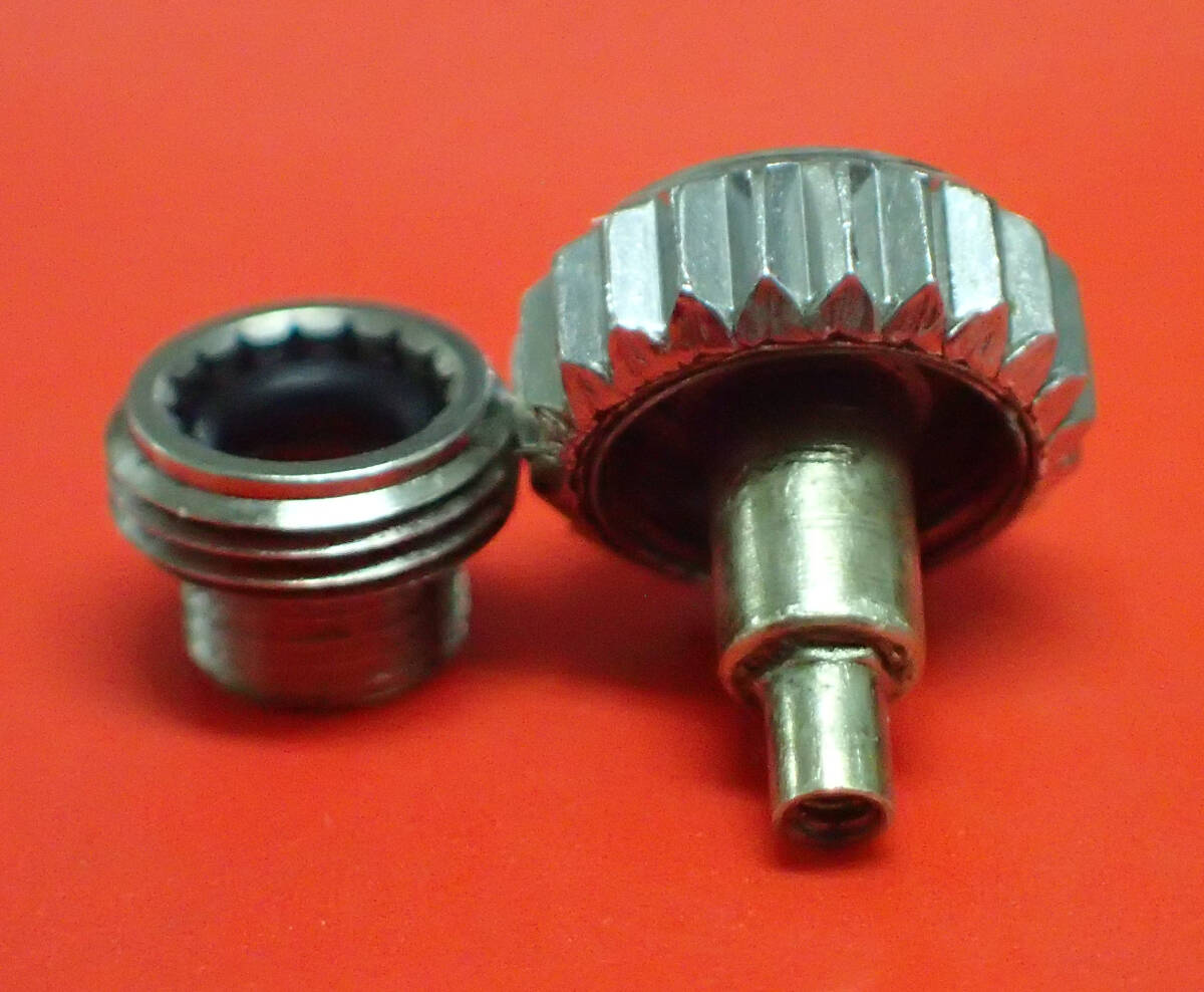 中古リューズの約7割はねじ込みが0.5から1.0回転未満で交換しても長くは使えません。当店では約1.5回転(時計回り)以上のリューズのみを選別し販売しております。回転数は新品のチューブで計測しており、損耗したチューブの場合は回転数が減りますのでチューブセットのご購入をお勧め致します。