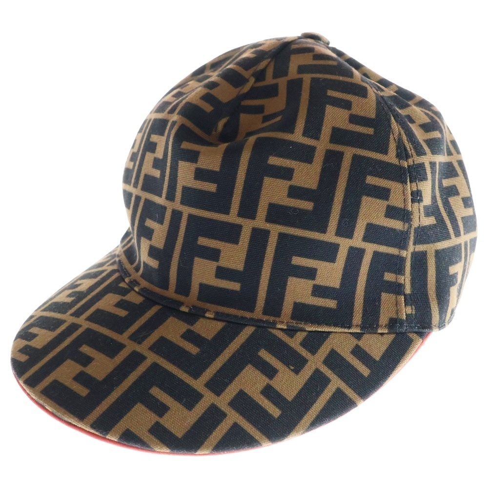 FENDI フェンディ ズッカ柄 ベースボールキャップ 帽子 ブラウン×ブラック ポリエステル FXQ768