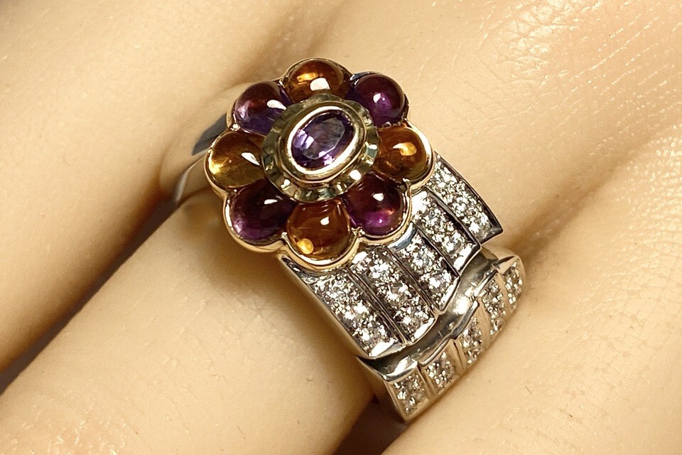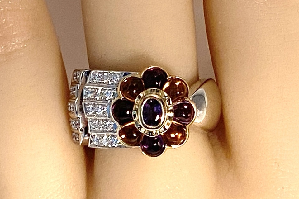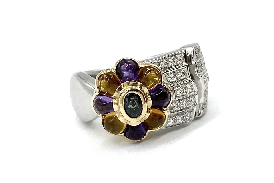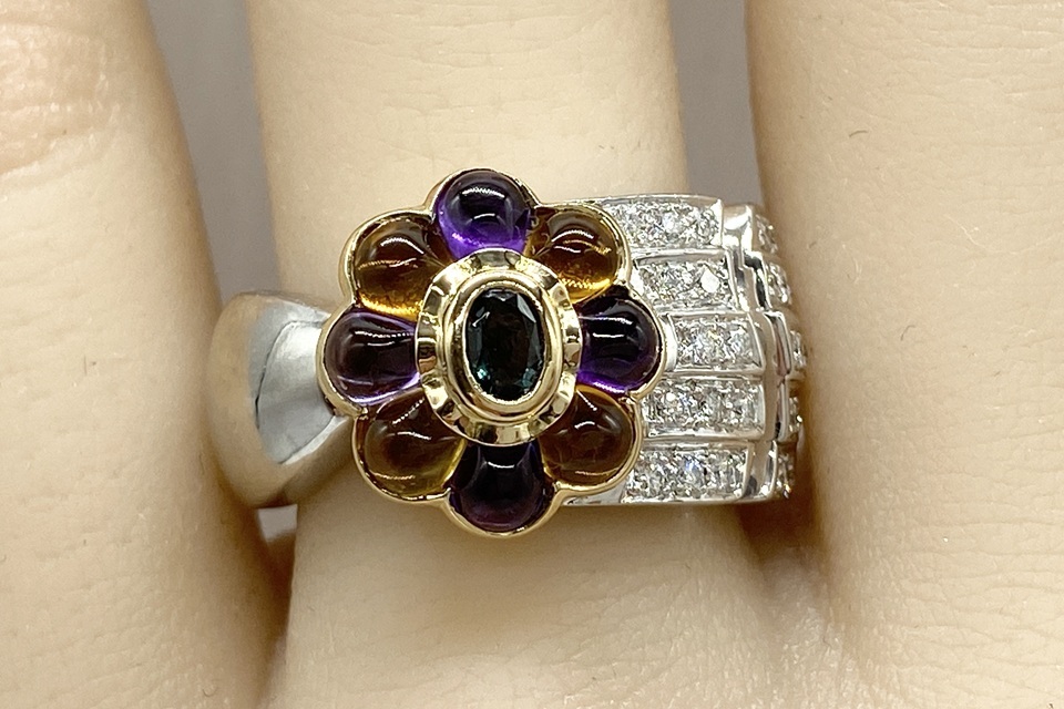 | 品名 | JEWEL STUDIO 【ジュエルスタジオ】 Pt900/K18アレキサンドライト アメシスト シトリン ダイヤモンドリング |