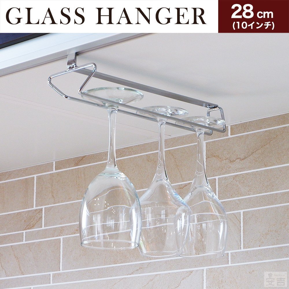 特長 | ・高さ28mmまでの棚板などに差し込む差し込み式のグラスハンガー。 ・ビスを使用しないので棚を傷つけません。 |