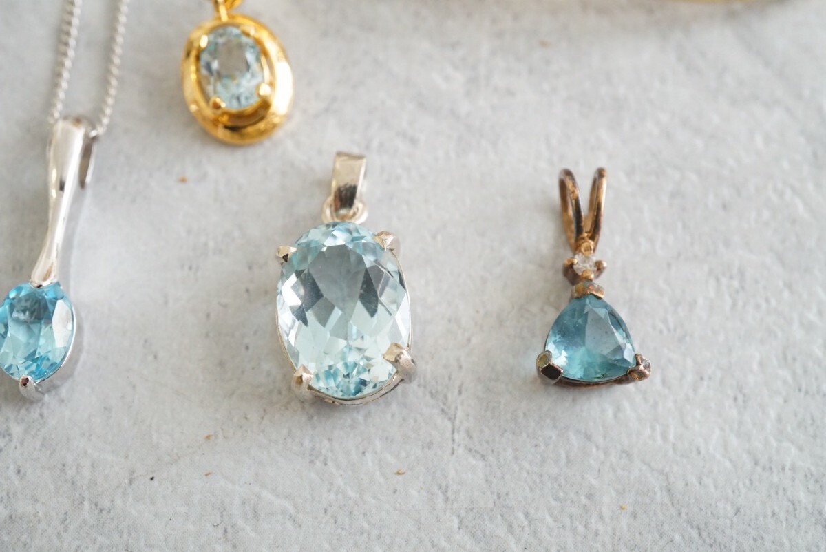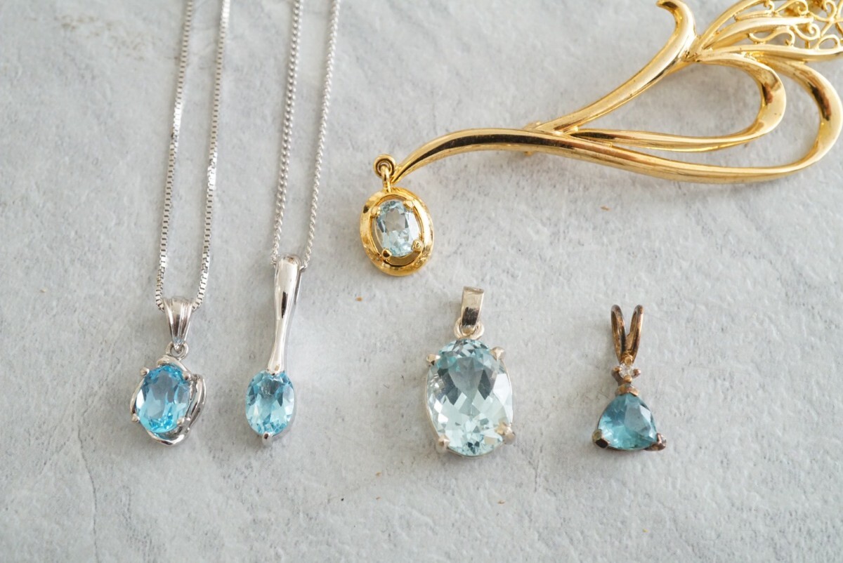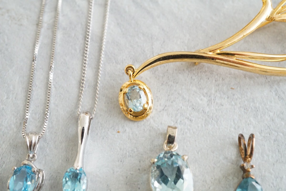 B275 ブルートパーズ ネックレス ペンダント ブローチ ヴィンテージ アクセサリー カラーストーン 大量 まとめて おまとめ SILVER含む
