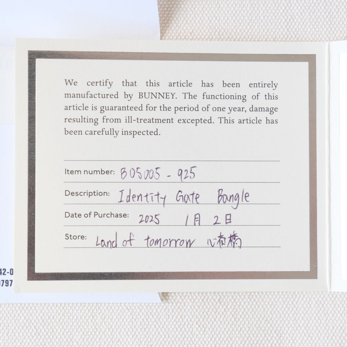 Bunneyのバングル、IDタグのタイプです。