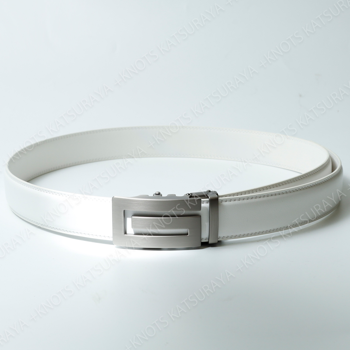 本革 オートロック メンズ ベルト★ホワイト白★穴無し自動 レザー カジュアル ジーンズ デニム 紳士 通勤 ビジネス ゴルフ スーツa330