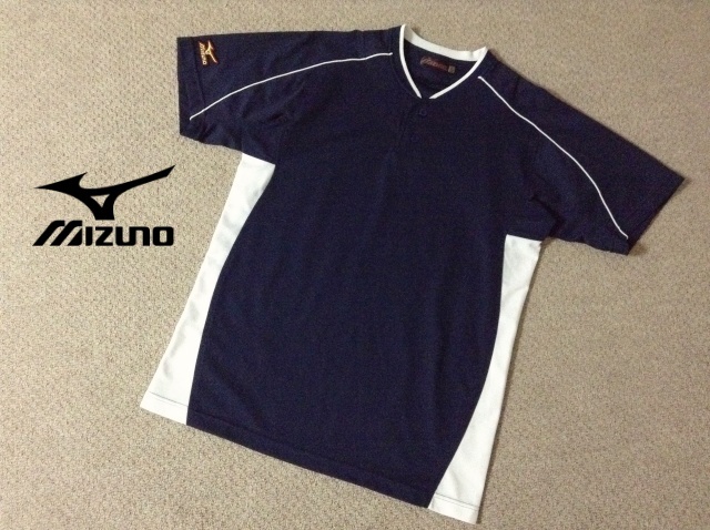 ♪商品 | ★美品★日本製 ミズノ 野球 半袖シャツ ワンポイントロゴ 刺繍 ネイビー mizuno 部活 練習 大会 トレーニング 52LB-103 |