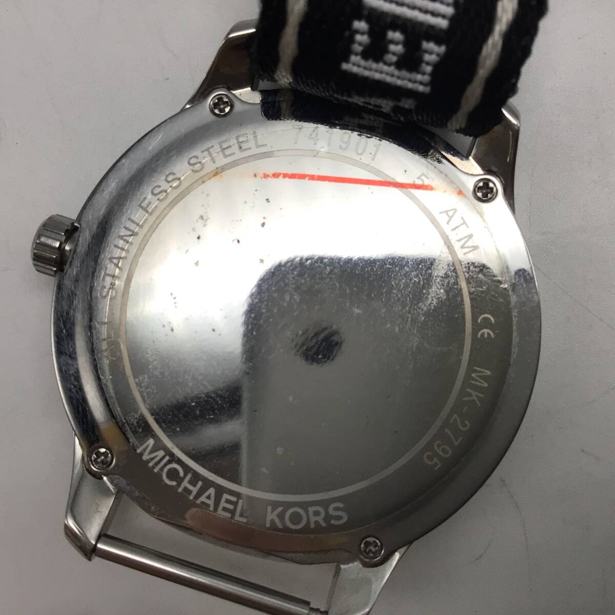 6965■ MICHAEL KORS マイケルコース ランウェイ 白黒文字盤 MK-2795 時計 電池切れ テスター○