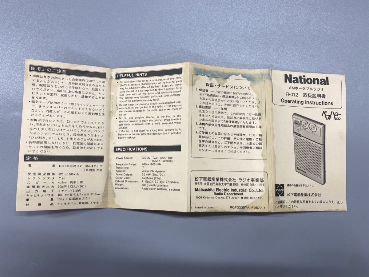 National R-012 AMコンパクトラジオ Pepper012 アンティーク ナショナル 動作未確認 GSH100203