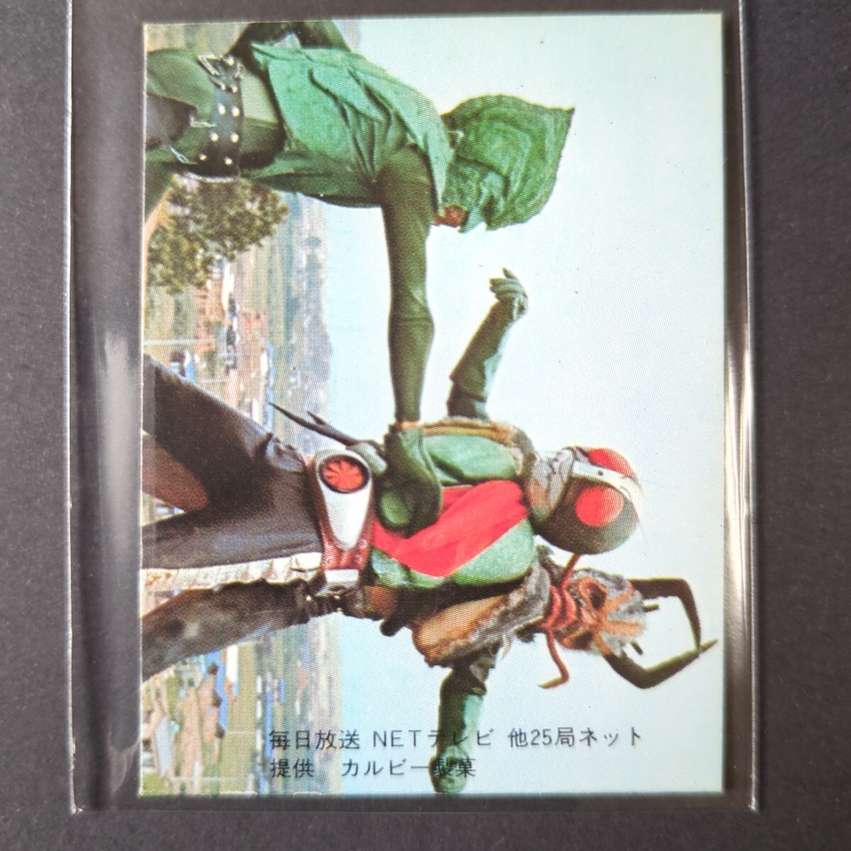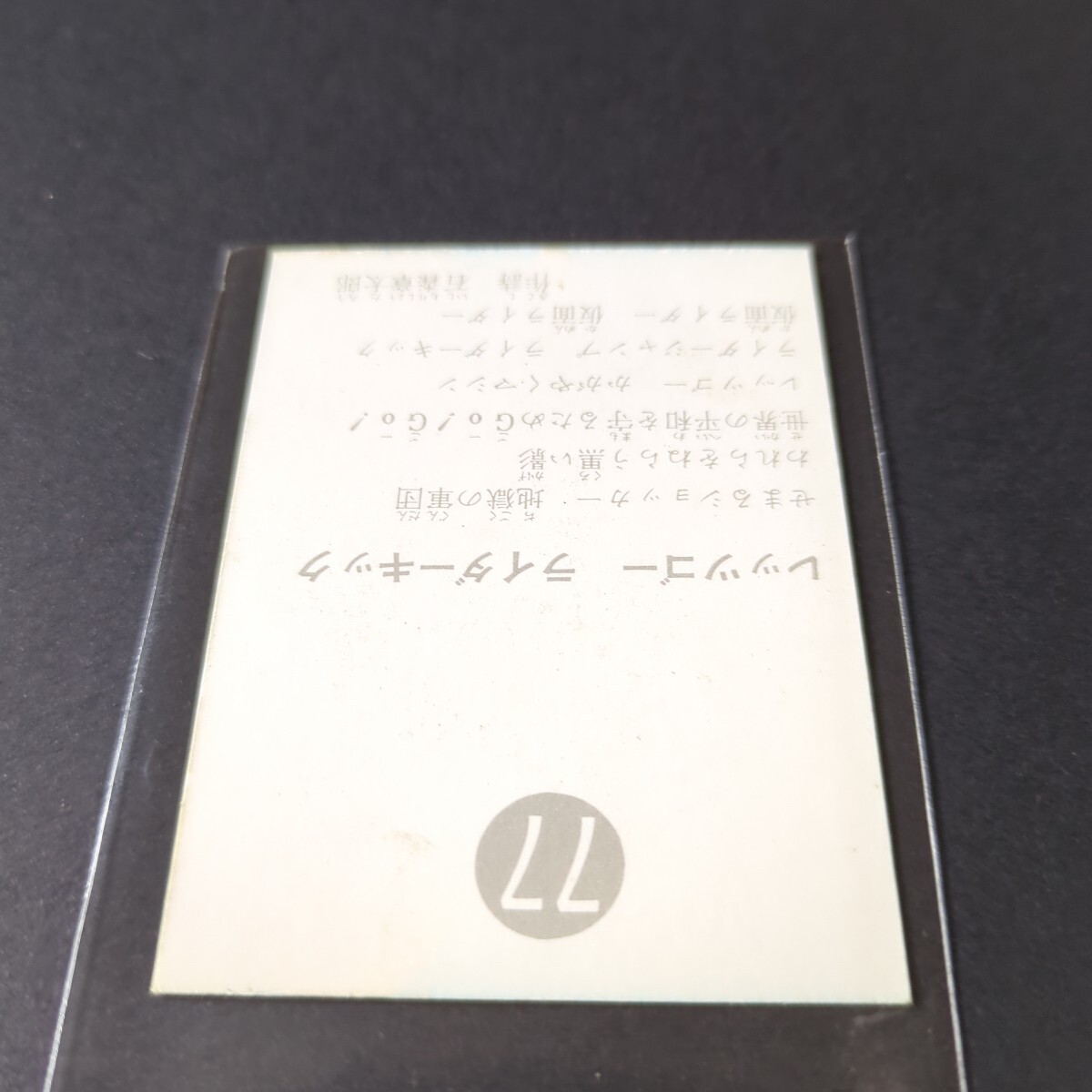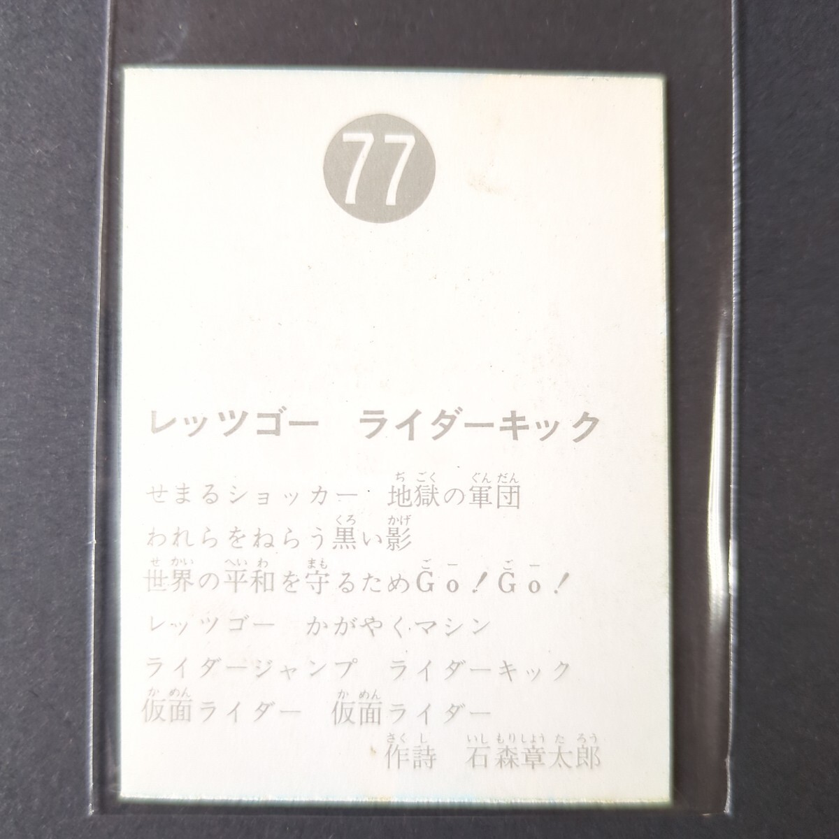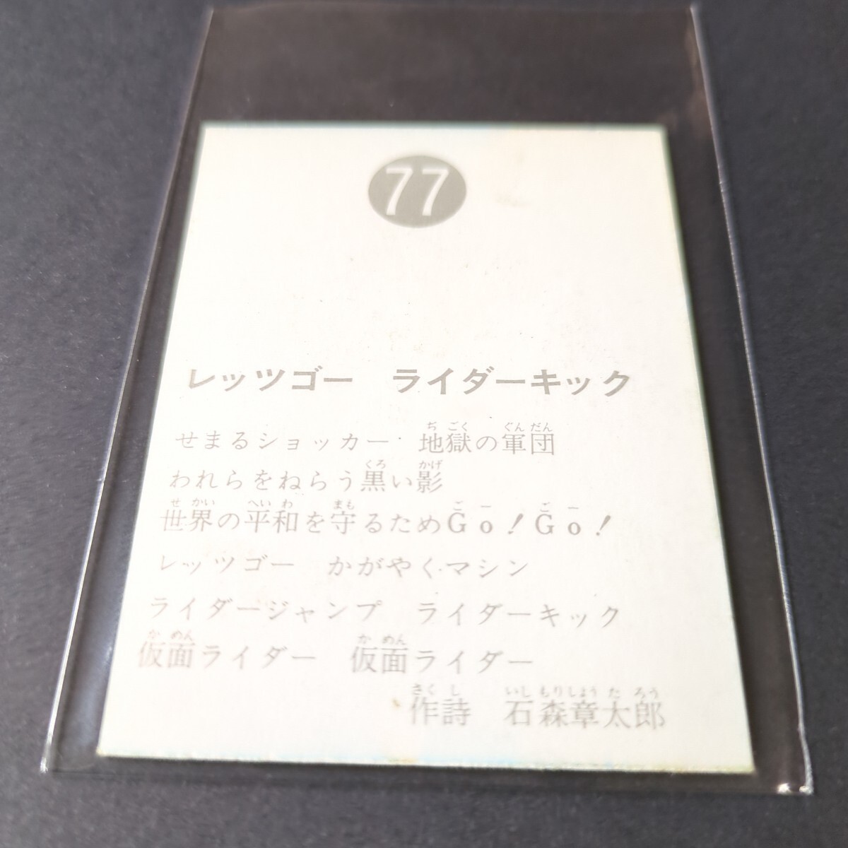 旧カルビー仮面ライダーカード:77番 レッツゴー ライダーキック【表25局版】(中古・良品)です。