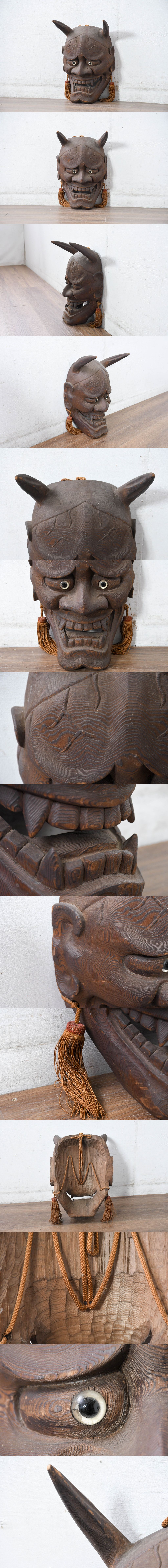 和製ビンテージ 特大サイズ!! 高さ約45cm 神代杉 魂を射抜く眼光が目を惹かれる玉眼入り般若の木彫り(オブジェ、飾り、アート、ヴィンテージ)