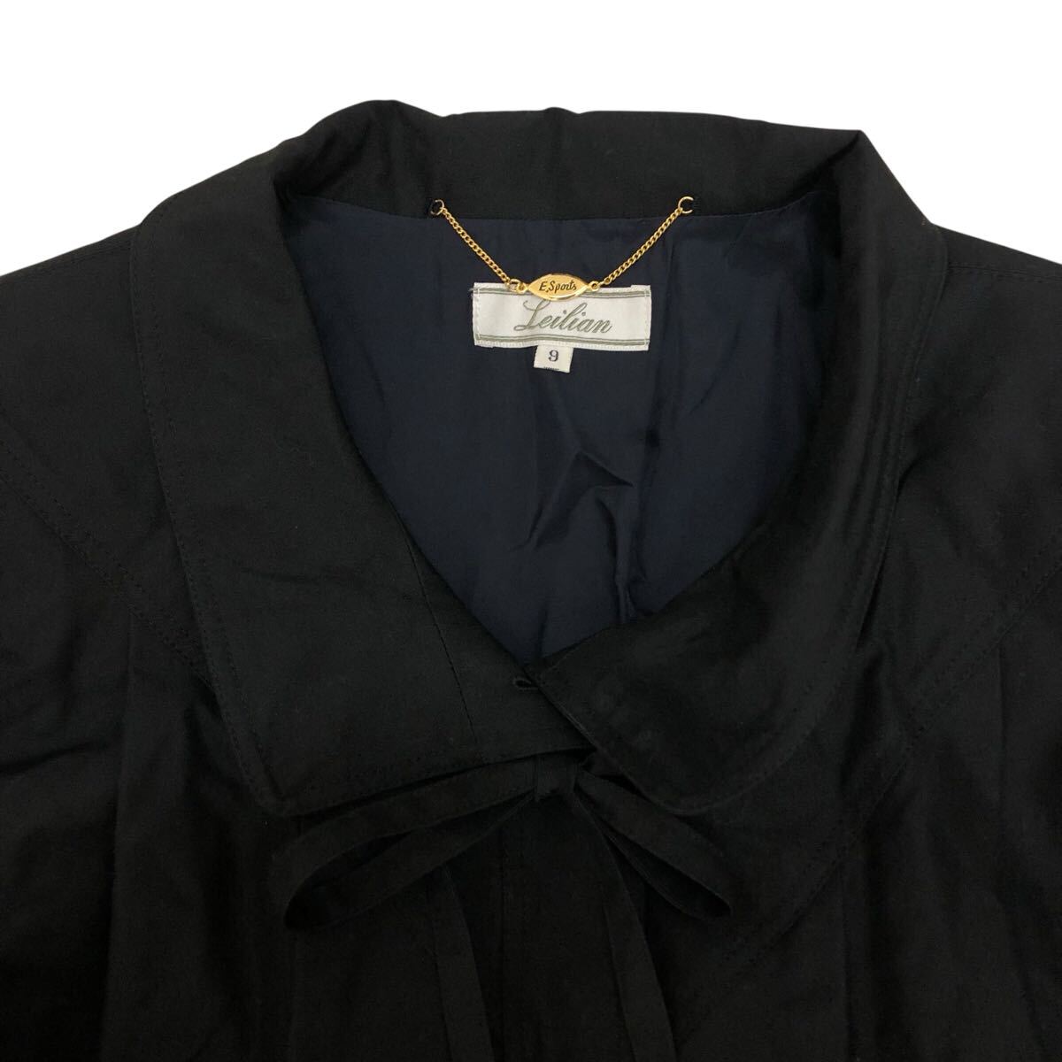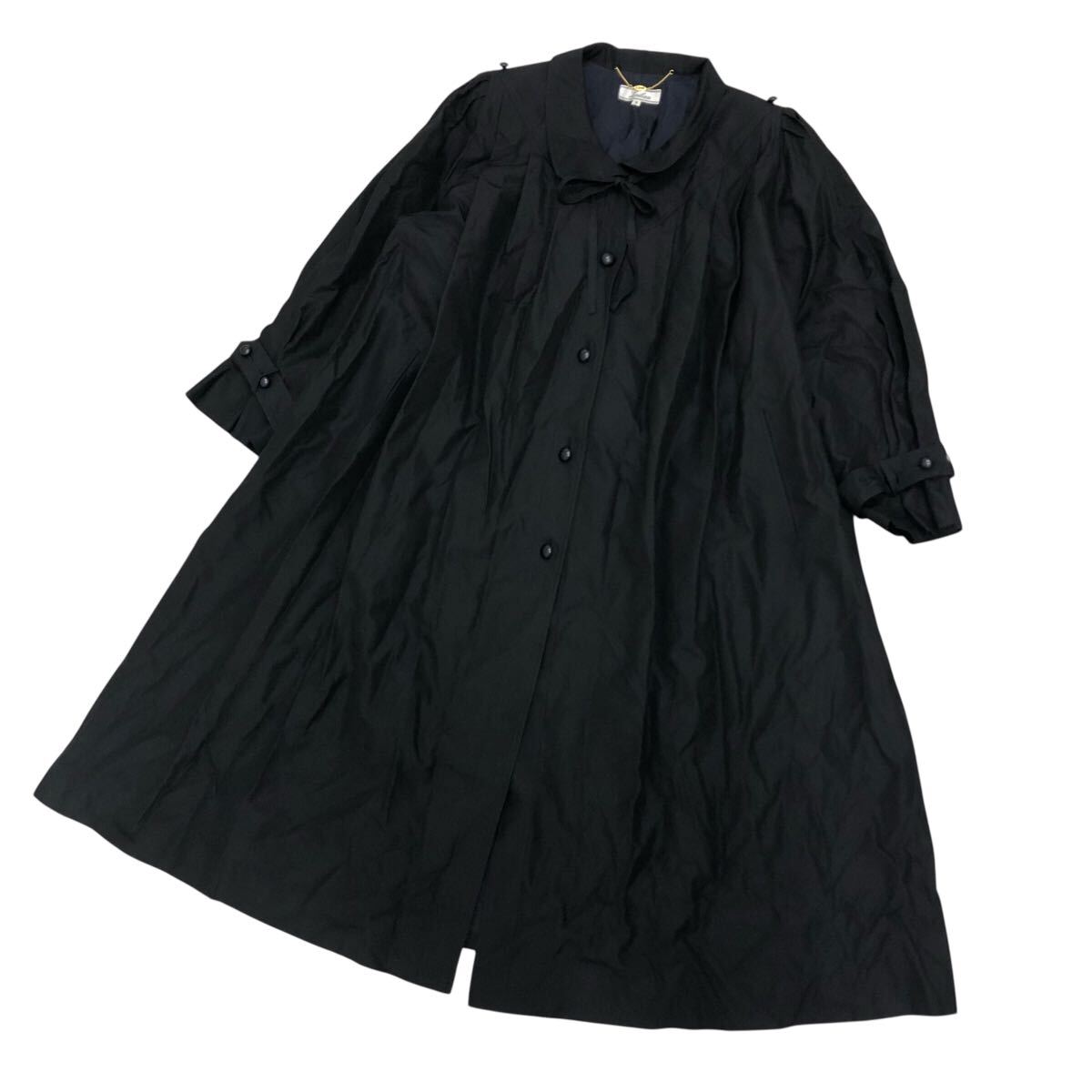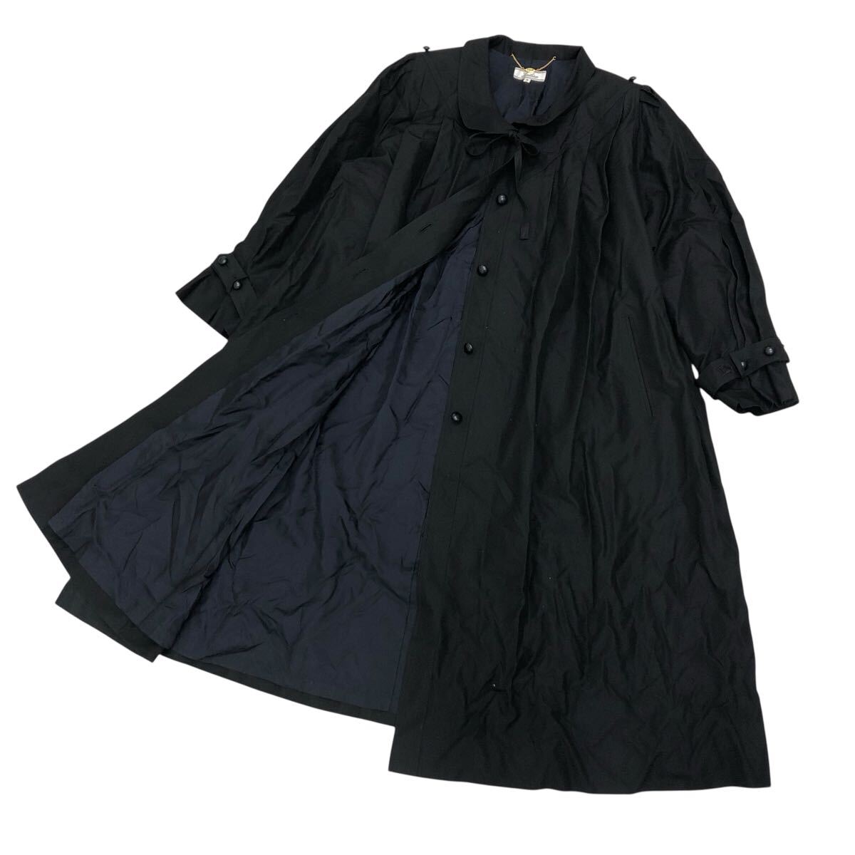 10K338-83 Leilian レリアン シルク 長袖 コート ロング ゆったり アウター 上着 黒 レディース 女性用 9