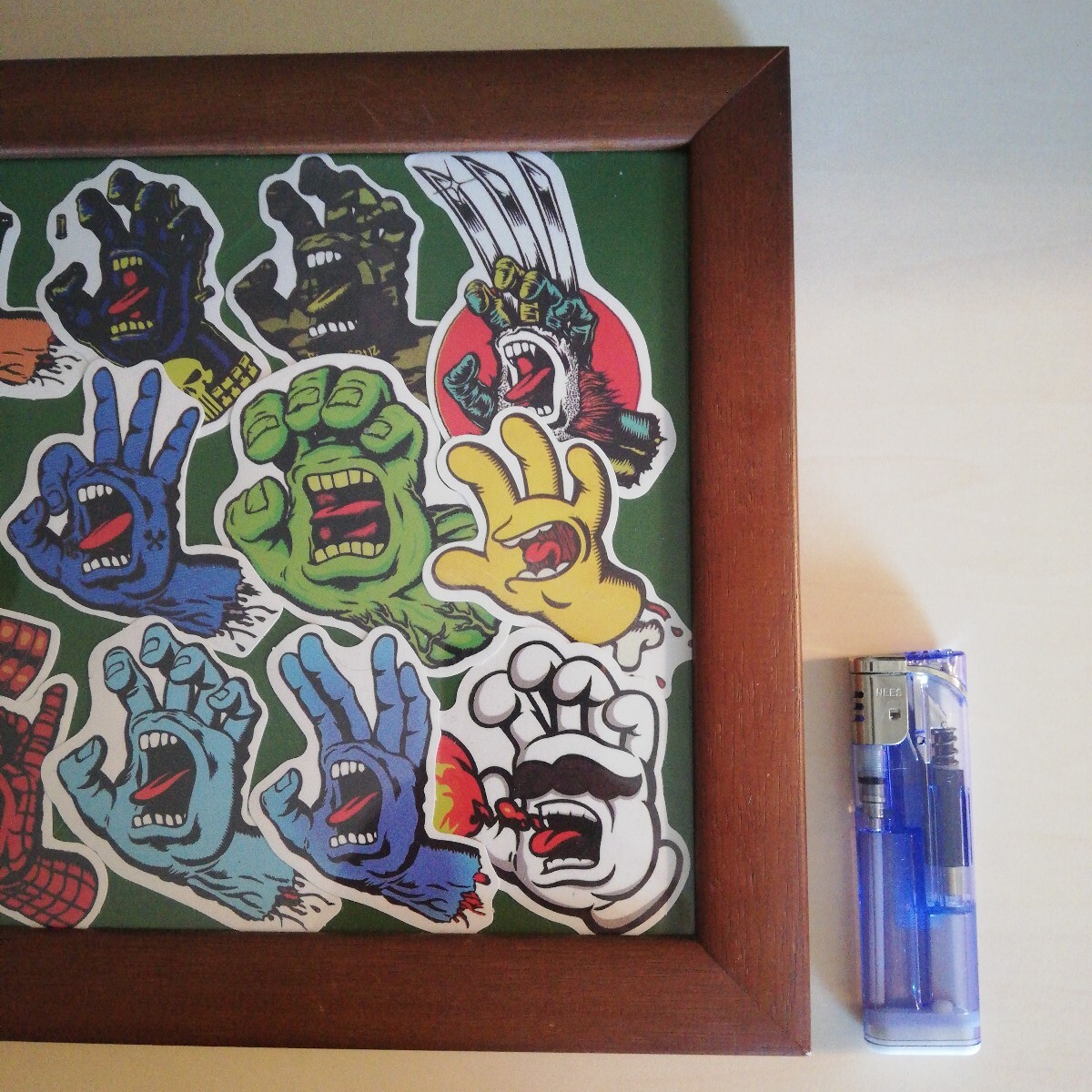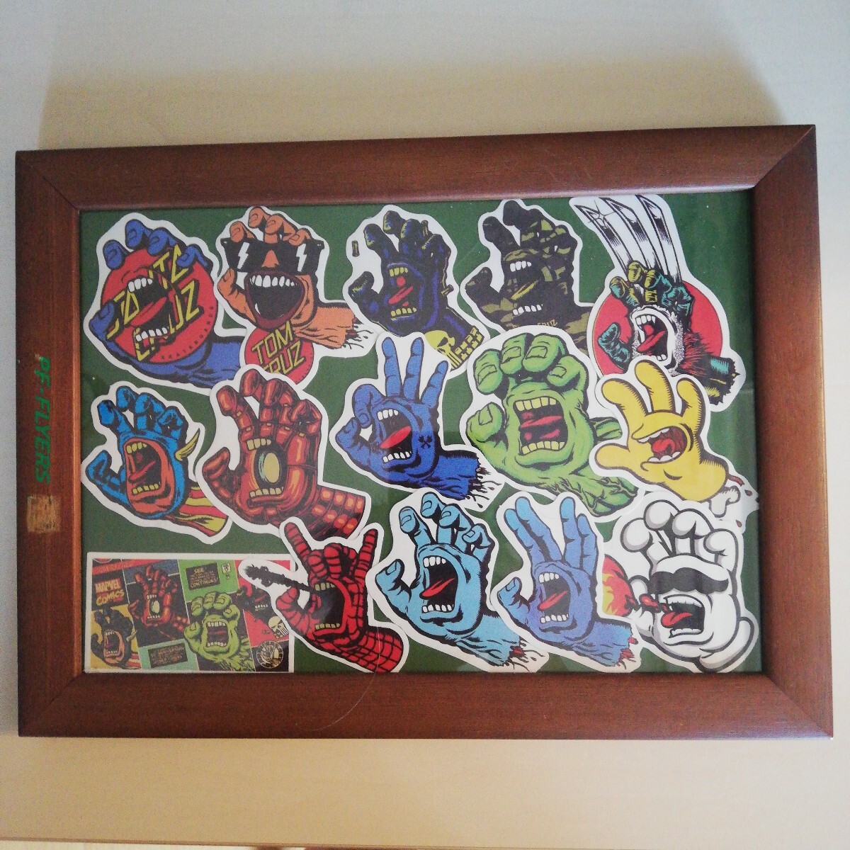 SANTA CRUZステッカー15枚を額に入れたもの。
