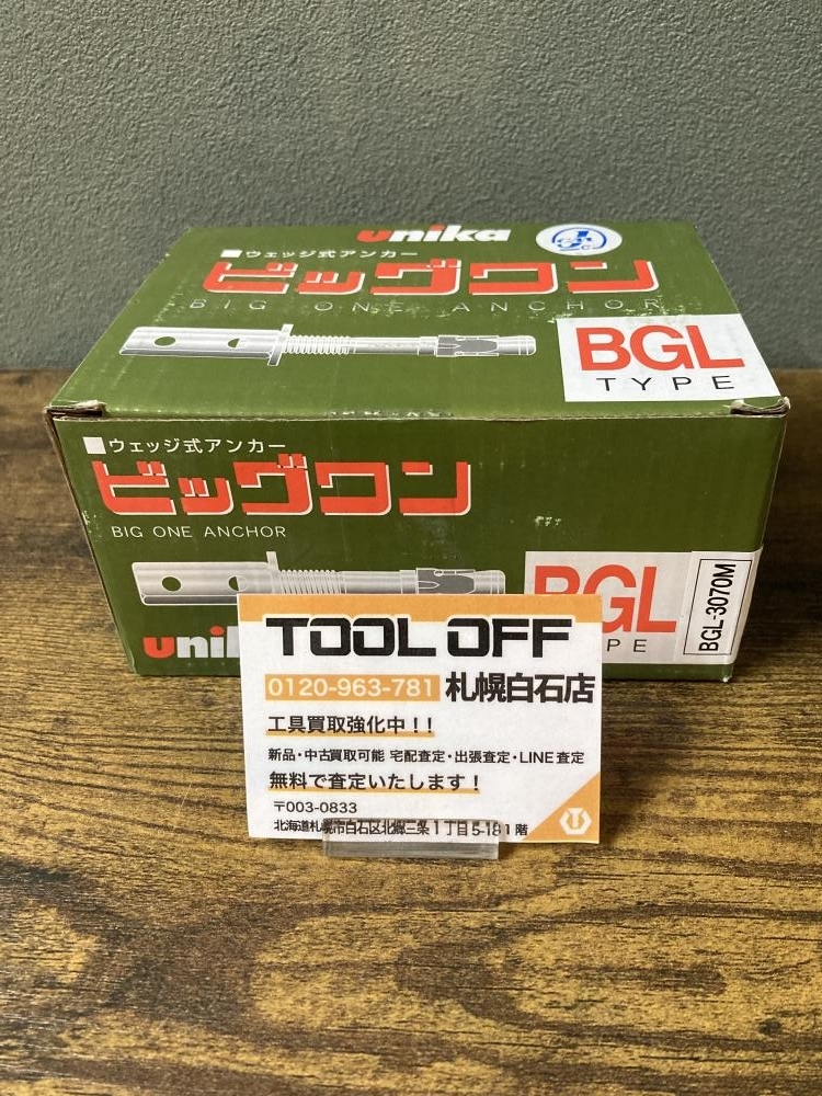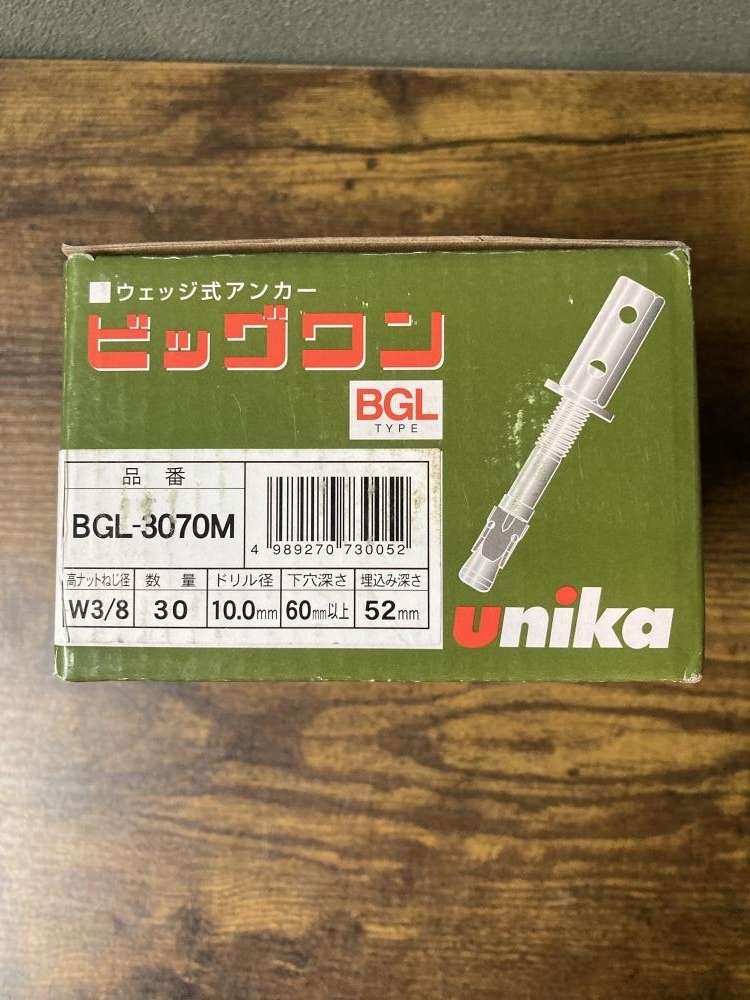 ユニカ ■商品名 ウェッジ式アンカービッグワン BGLタイプ ■型番 BGL-30M |