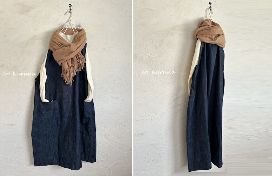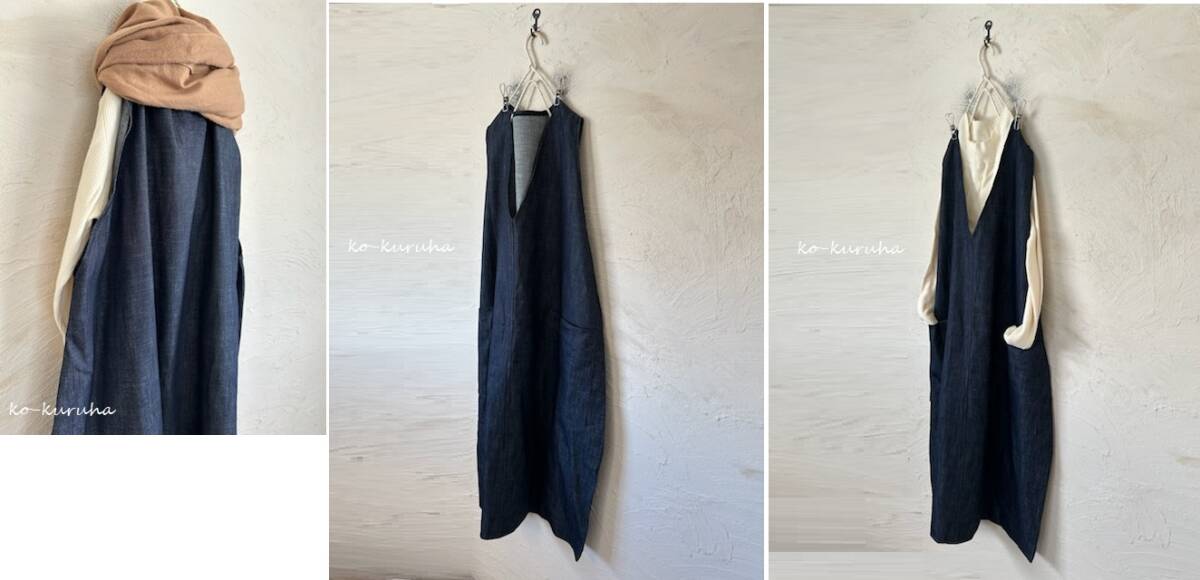 ★9オンス微ストレッチデニム。VネックノースリーブコクーンOP ★ |