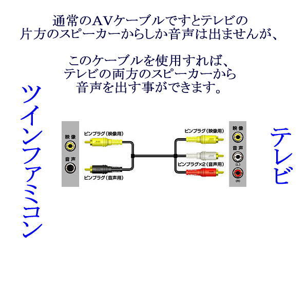 ●AVケーブルは通常ですと、2ピンの映像と音声(モノラ ルですのでテレビの片方のスピーカーからでしか音は出ませんが)