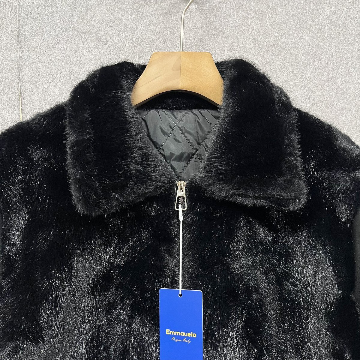 上品・ファーコート 定価8万◆Emmauela・イタリア・ミラノ発◆ミンク混 光沢 ソフト もこもこ 保温 折り襟 切替 毛皮コート 普段着 冬 M/46