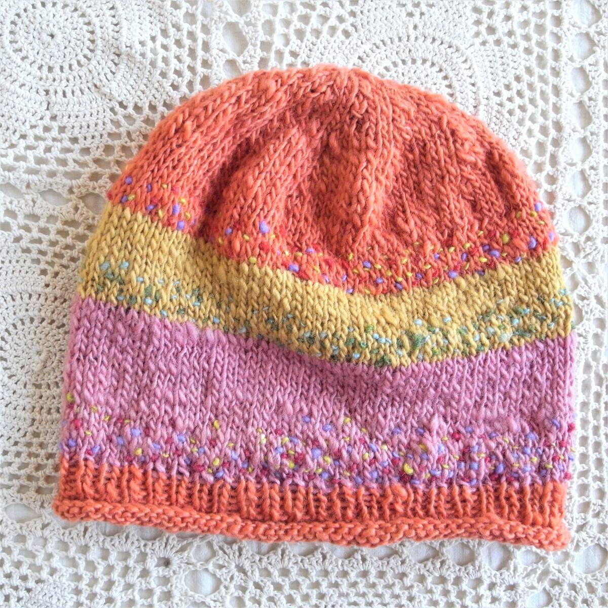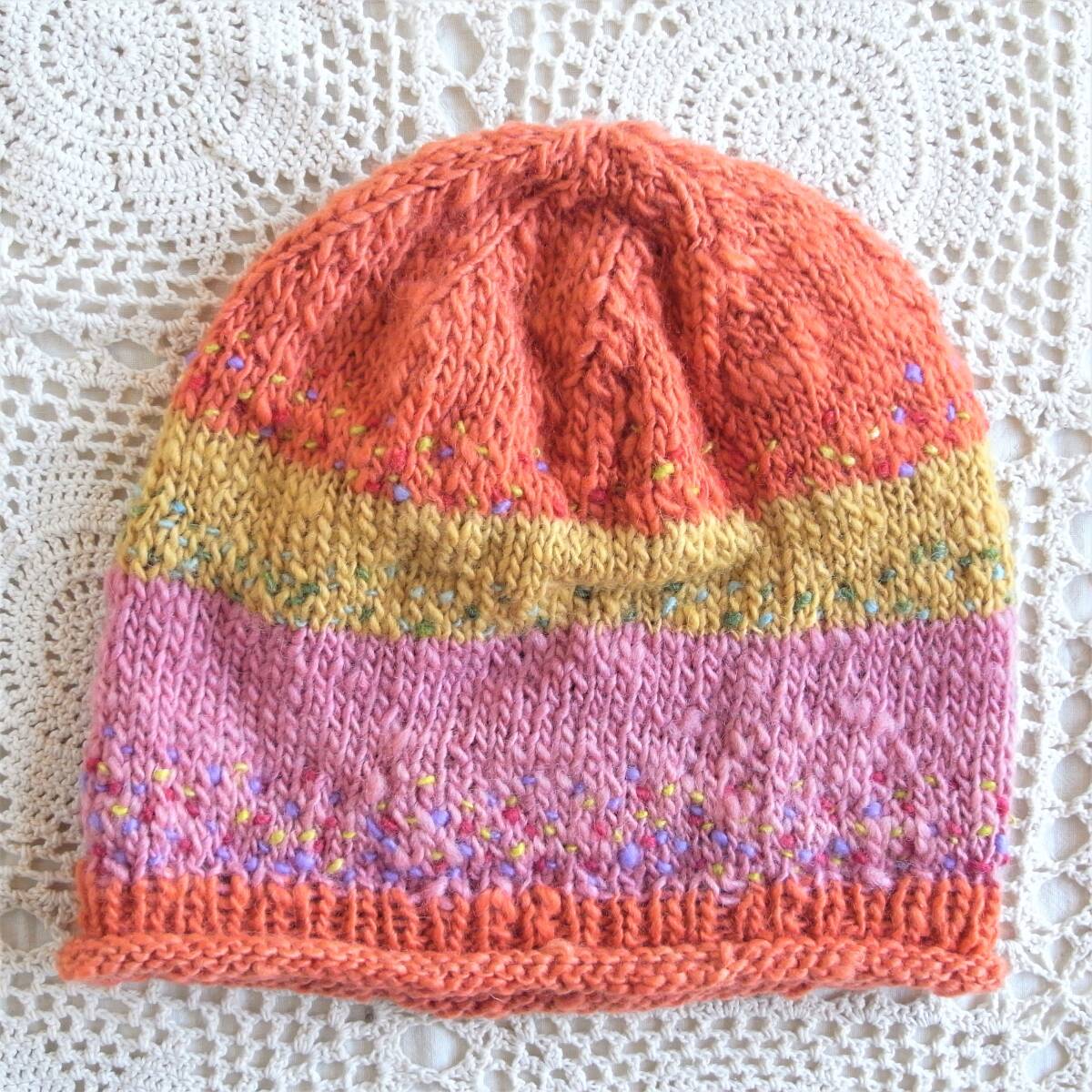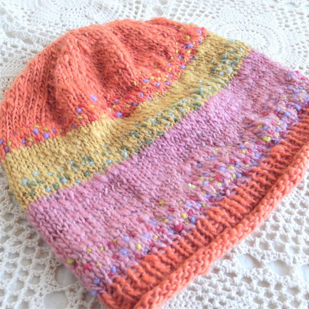 送料無料 ハンドメイド 手紡ぎ 手編み ボーダー柄 ニット帽
