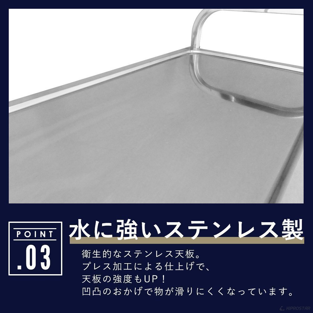 メーカー | KIPROSTAR | 特長 | ステンレス ワゴン 組立式はスムーズに移動できる キャスター付き 。 キャスターにはロック機能も付いています。ステンレス製なので掃除が簡単な ワゴン 業務用 !! 強度に優れ丈夫な キッチン ワゴン は調理場、厨房などで大活躍プロ仕様の ワゴン ! 食卓周りの小物がたっぷり収納できる ステンレス キッチン ワゴン です。 |