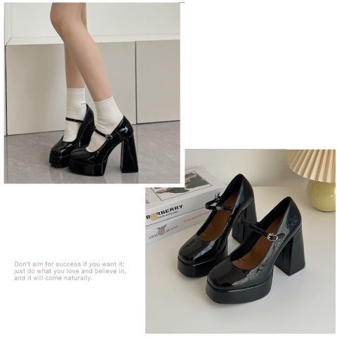 レディース パンプス 厚底 黒 ホワイト 美脚 脚長 太ヒール スタイルアップ 9cm エナメル調 艶感 23.5cm(37) 黒