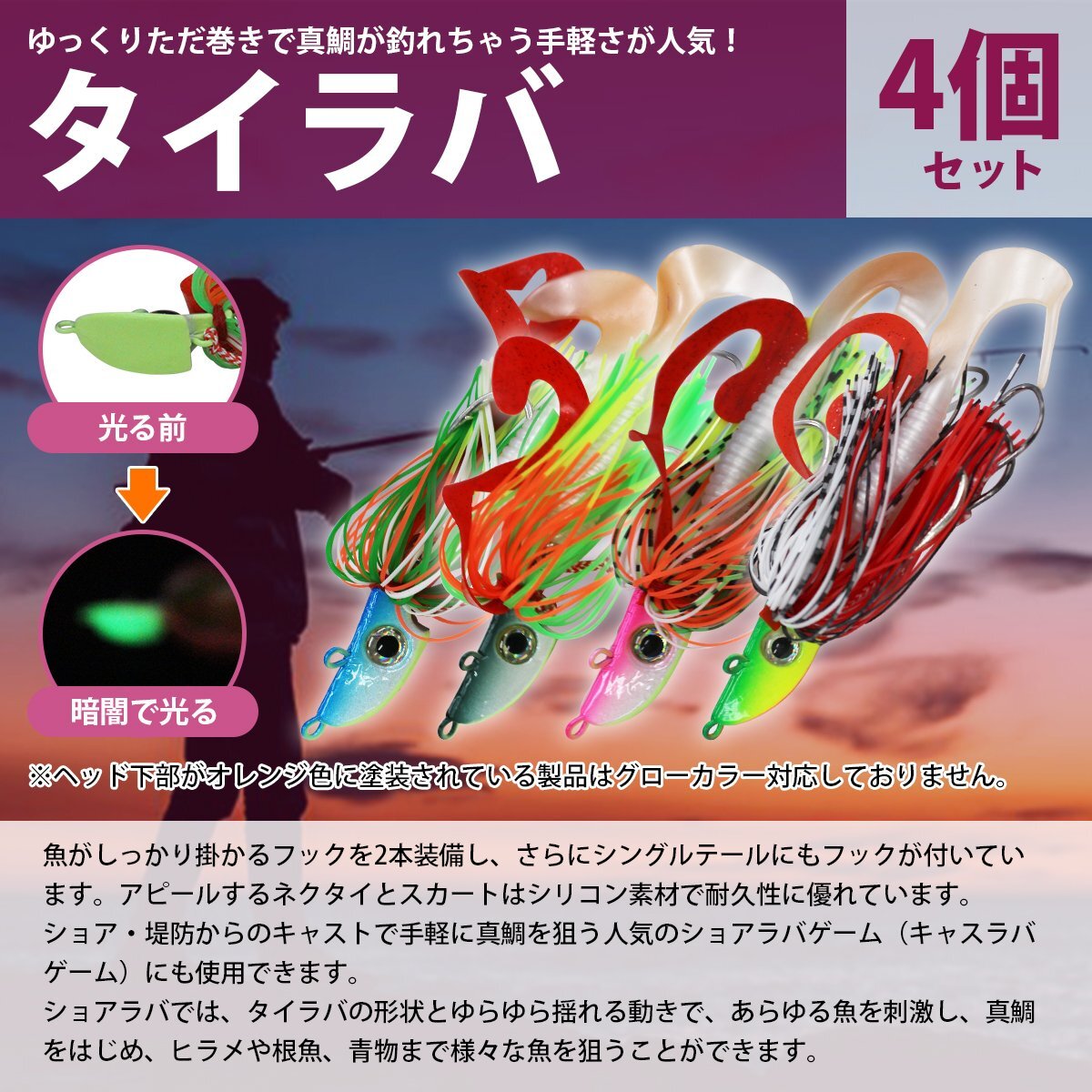 [4個セット] 蛍光 タイラバ ルアーセット 11cm/110mm 20g ラバージグ 疑似餌 タイ 真鯛 マゴチ ヤリイカ ブリ ヒラメ 光る