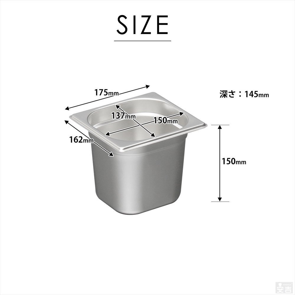 即納 ホテルパン1/6サイズ 深さ150mm フタなし |