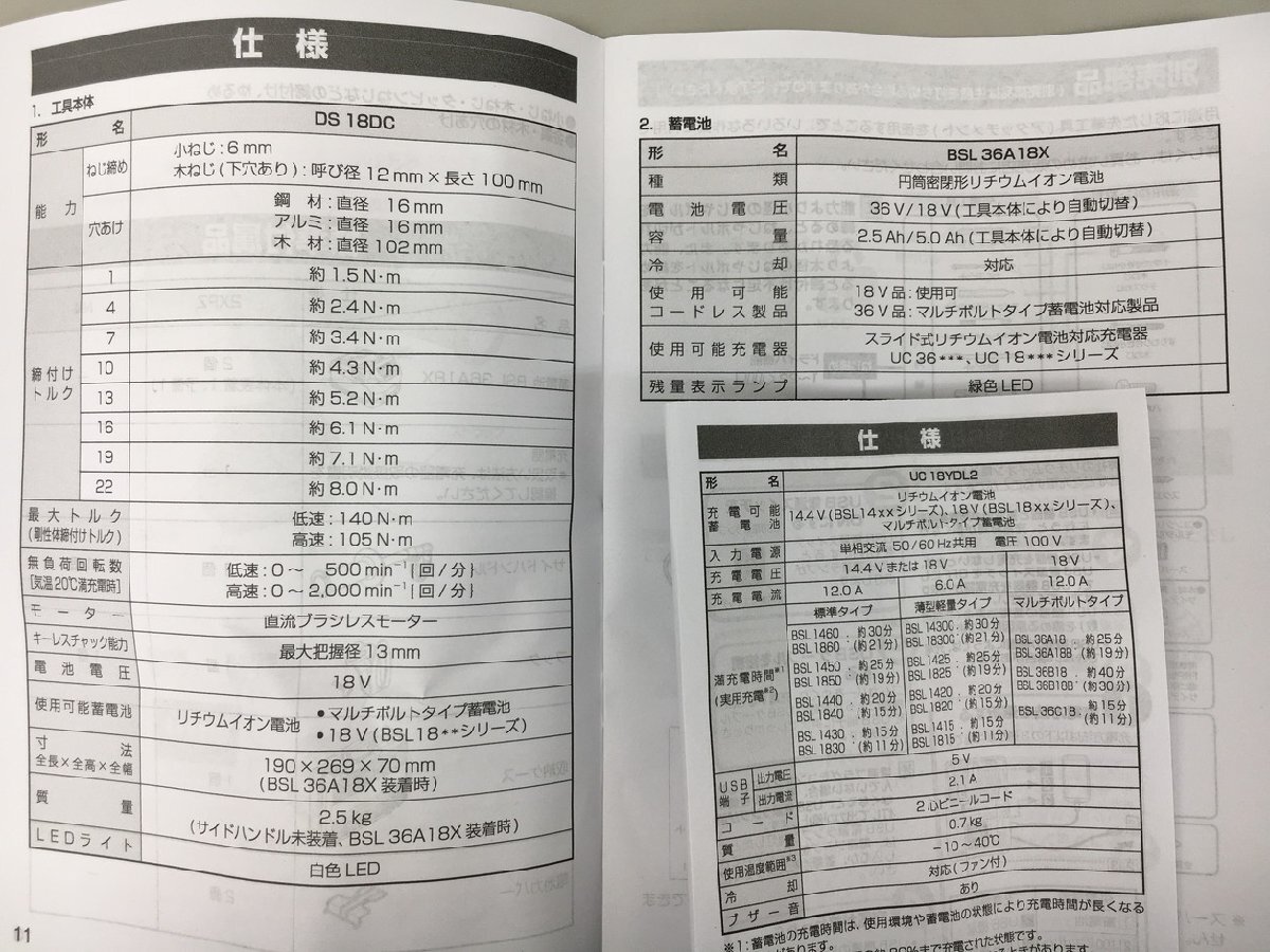 付属品: マルチボルト蓄電池(BSL36A18X)×2個・急速充電器(UC18YDL2)・サイドハンドル・ケース・電池カバー